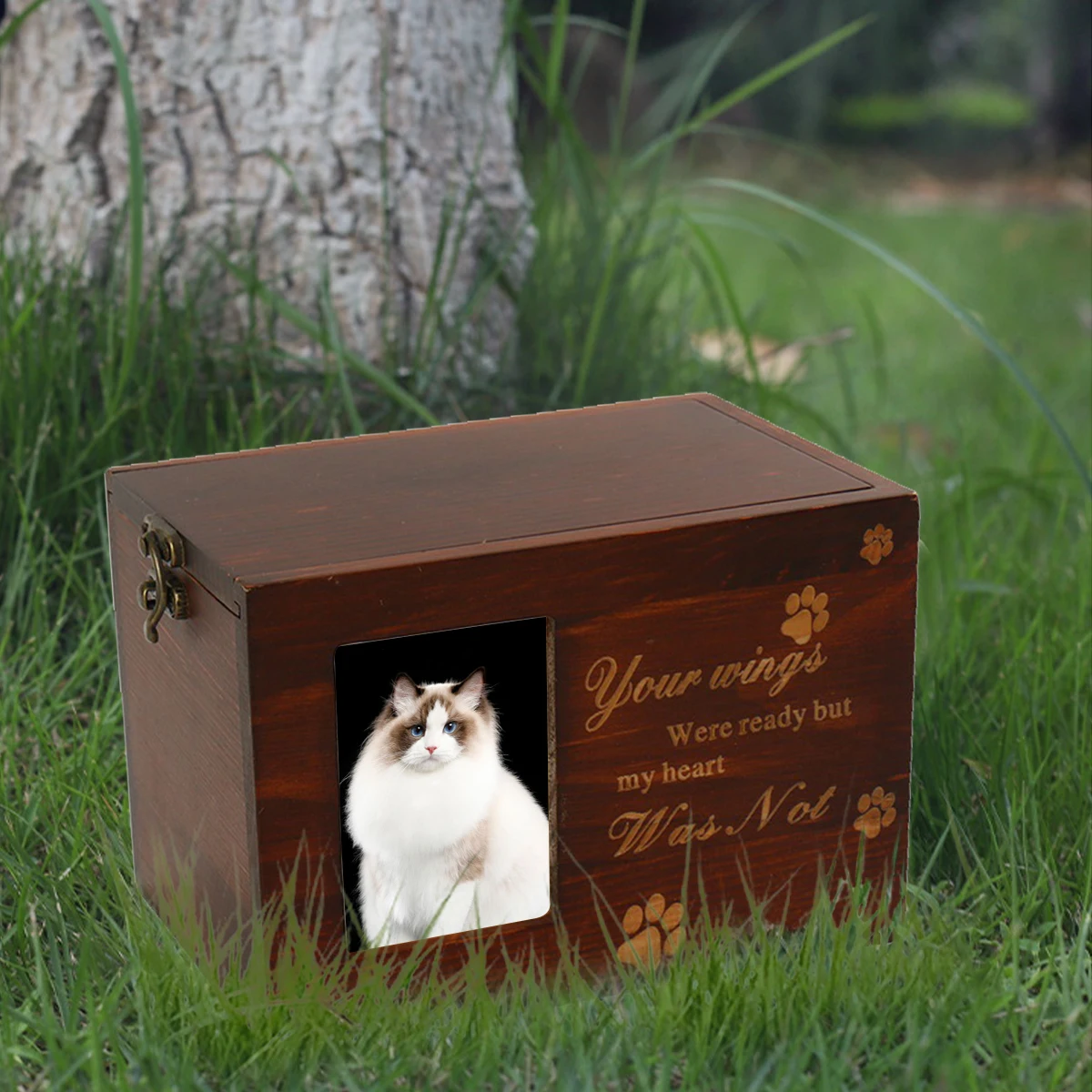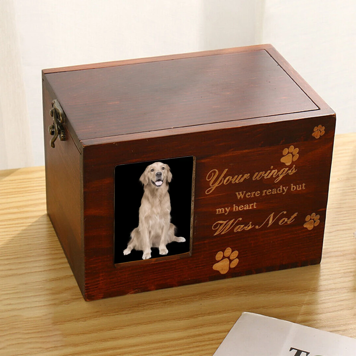 4. Wooden pet urn Bamboo wooden animal with photo frame vintage wooden funeral supplies small wooden box Wooden crafts