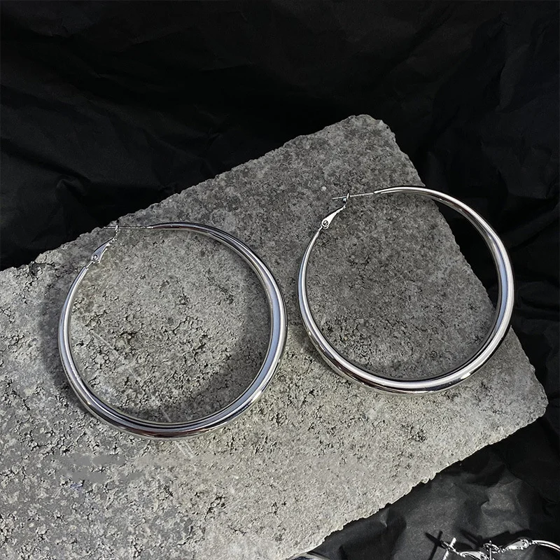 Classic Simple Geometric Round Big Stainless Steel Hoop Earrings for Women Exaggeration Circle Bride Earrings Jewelry Accessory