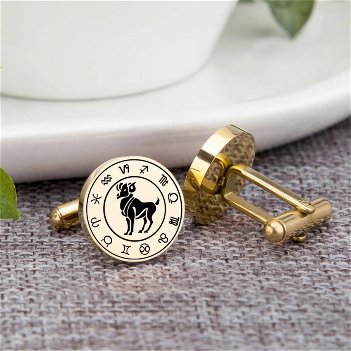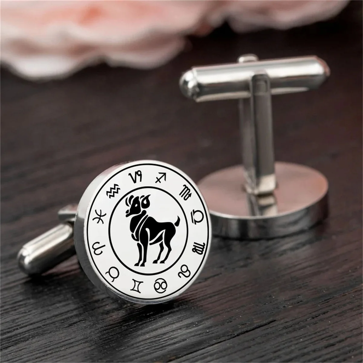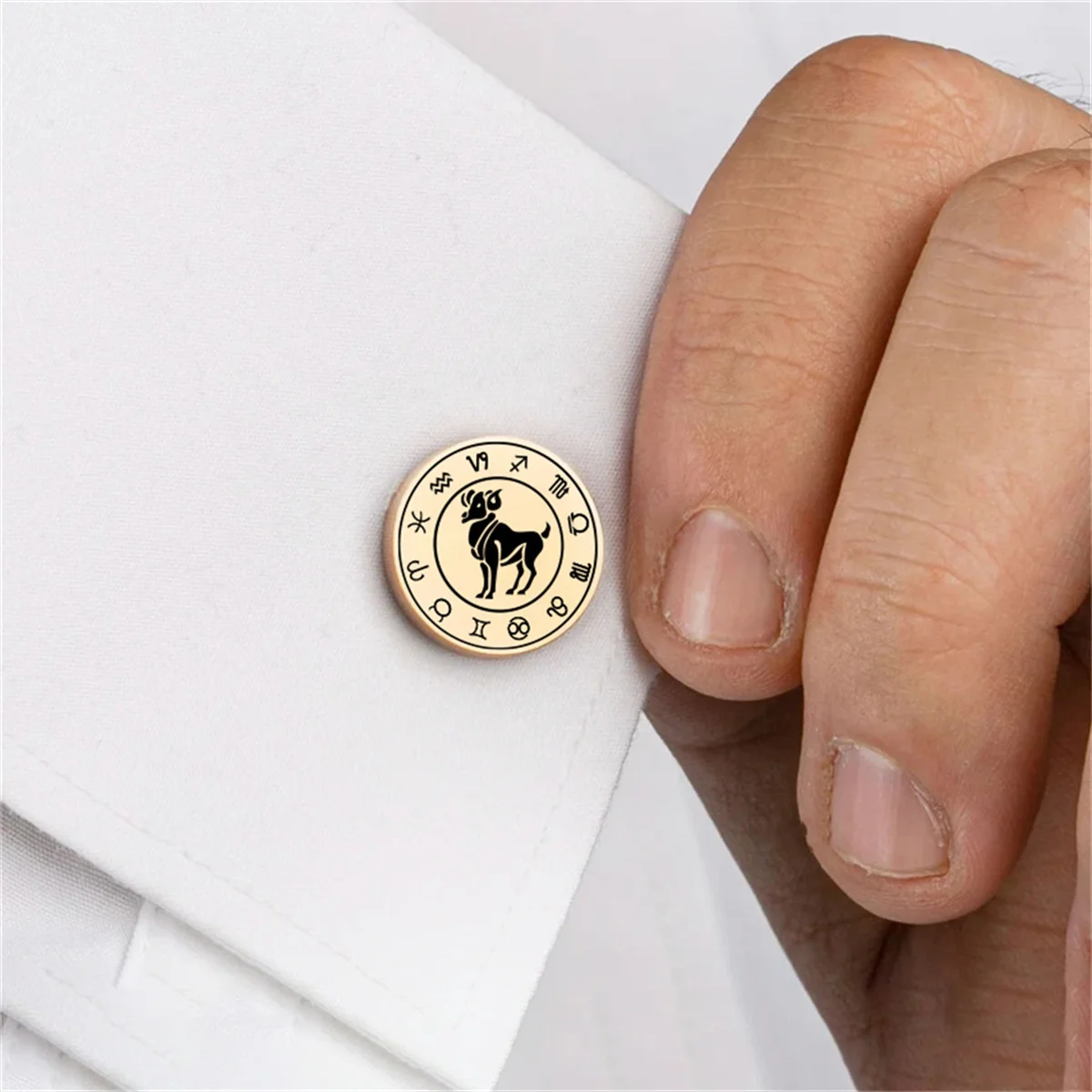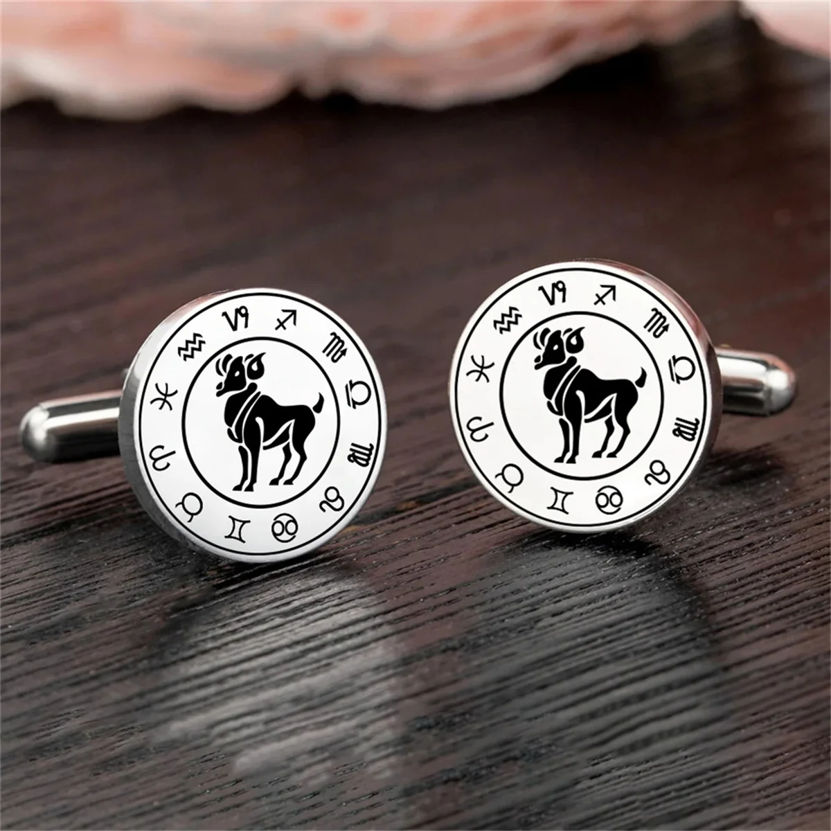 Classic Zodiac Cufflinks Stainless Steel Aries Cufflinks Men Shirt Suit Buttons Fashion Wedding Jewelry for Groom