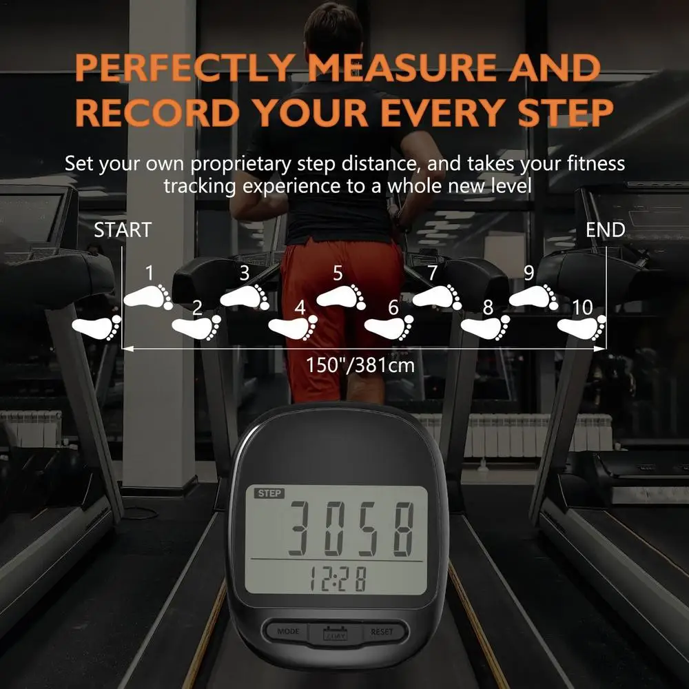 4.Total Fitness Companion: With multiple functions and a two lines display, our clip-on pedometer accurately tracks your distance, steps taken, and calories burned. Achieve your fitness goals easily with this smart tool!