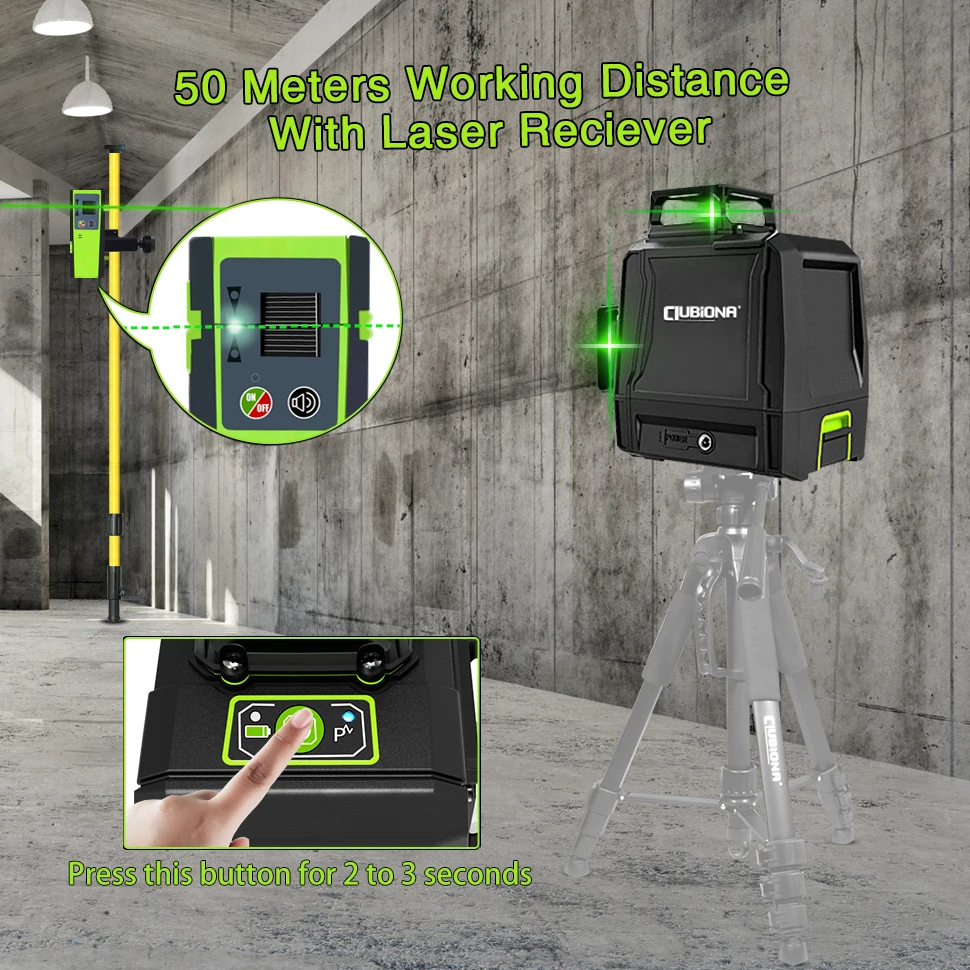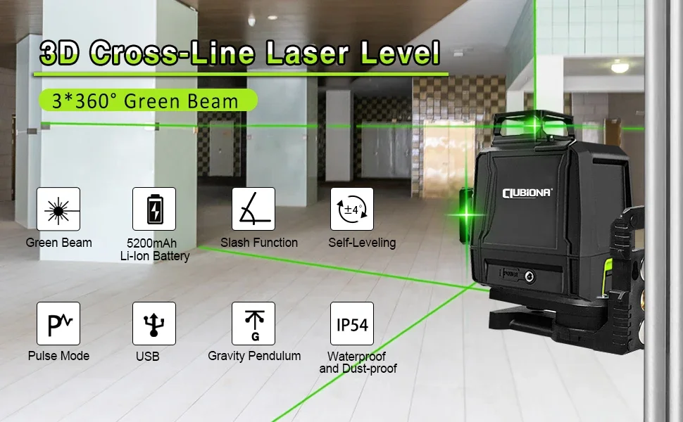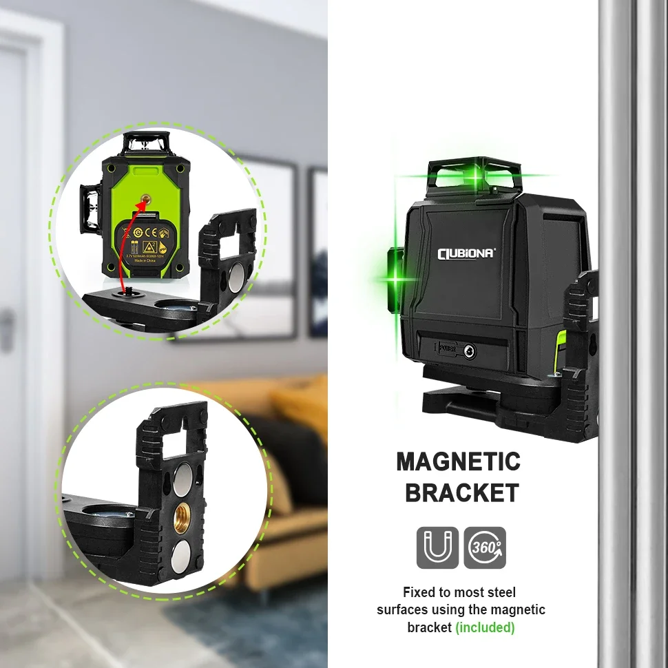 Clubiona CE certificated 3D Lines Laser Level with 5200 Mah BATTERY & Horizontal and Vertical Lines Work Separately Laser Lines