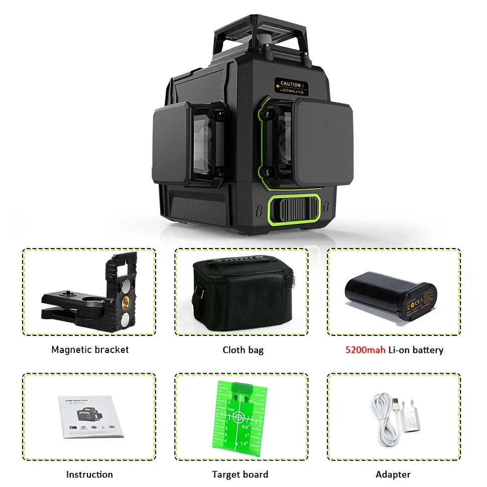 Clubiona CE Certificated 3D New ABS and PC Shell Shockproof Lines Laser Level with 5200 MAh BATTERY Work Separately Laser Lines
