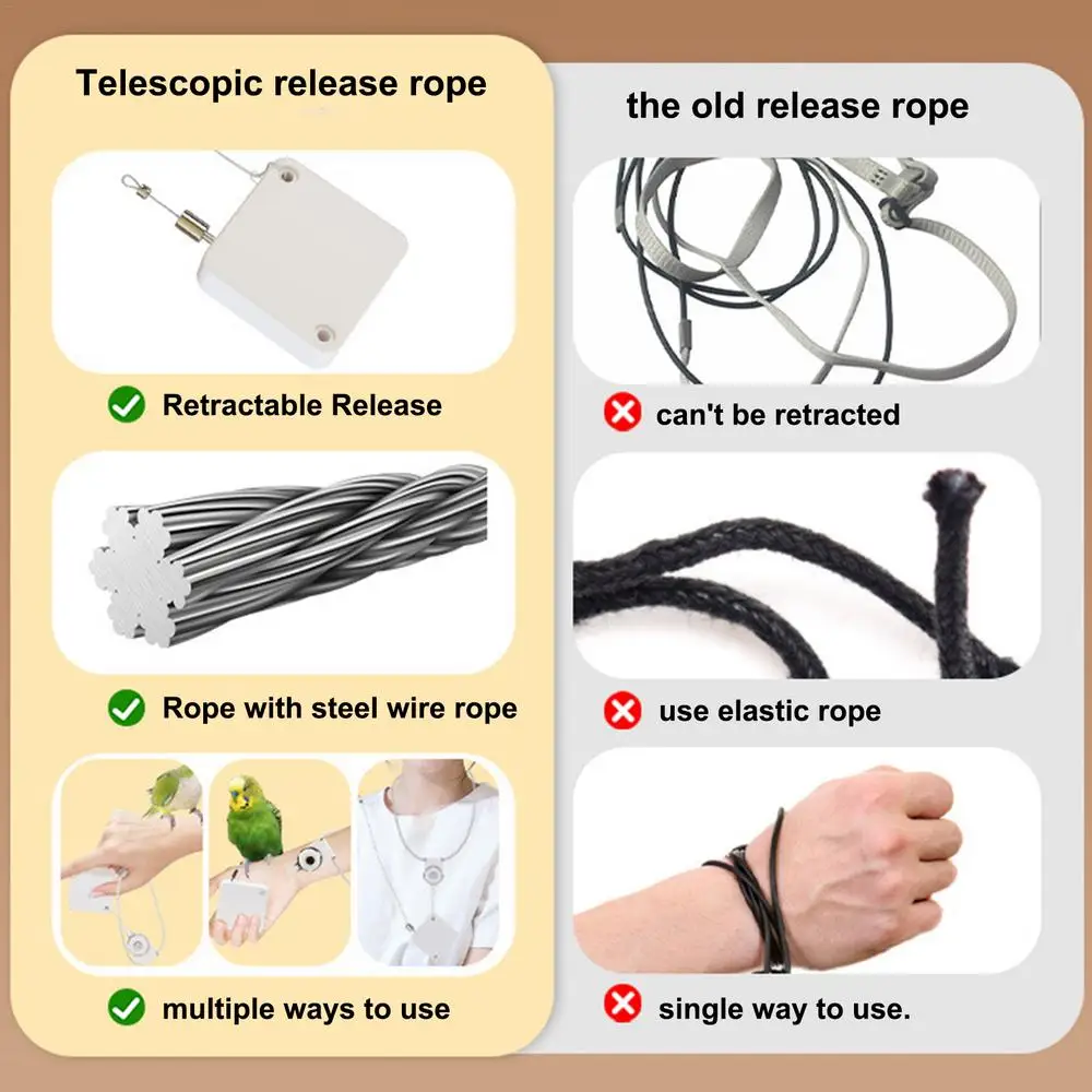 1.Exert Fun: With our innovative parrot leashes, featuring an auto-retracting design and smooth retraction mechanism, your bird can explore freely within safe reach