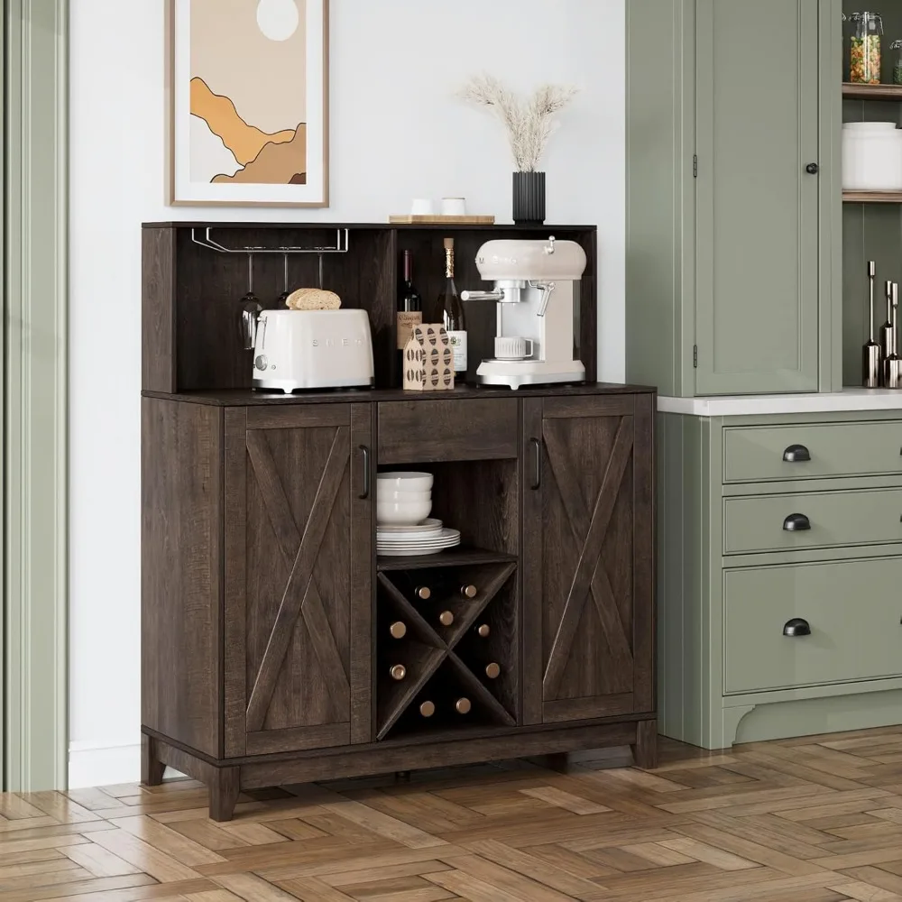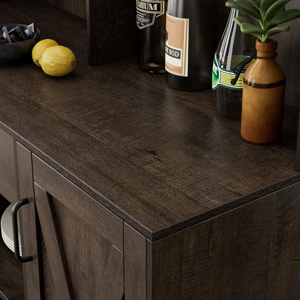 Coffee Bar Cabinet, Barn Doors Wine Liquor Bar Cabinet with Storage Hutch Kitchen Sideboard Buffet with Drawer Wine & Glass Rack