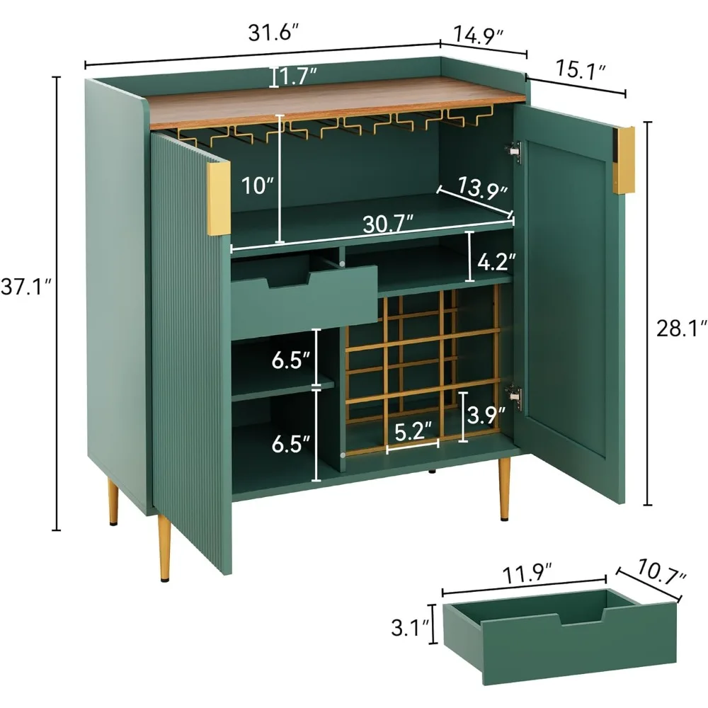 Coffee Bar Cabinet with Wine Racks, Green Liquor Cabinet with Fluted Texture, Modern Sideboard Buffet Cabinet for Kitch