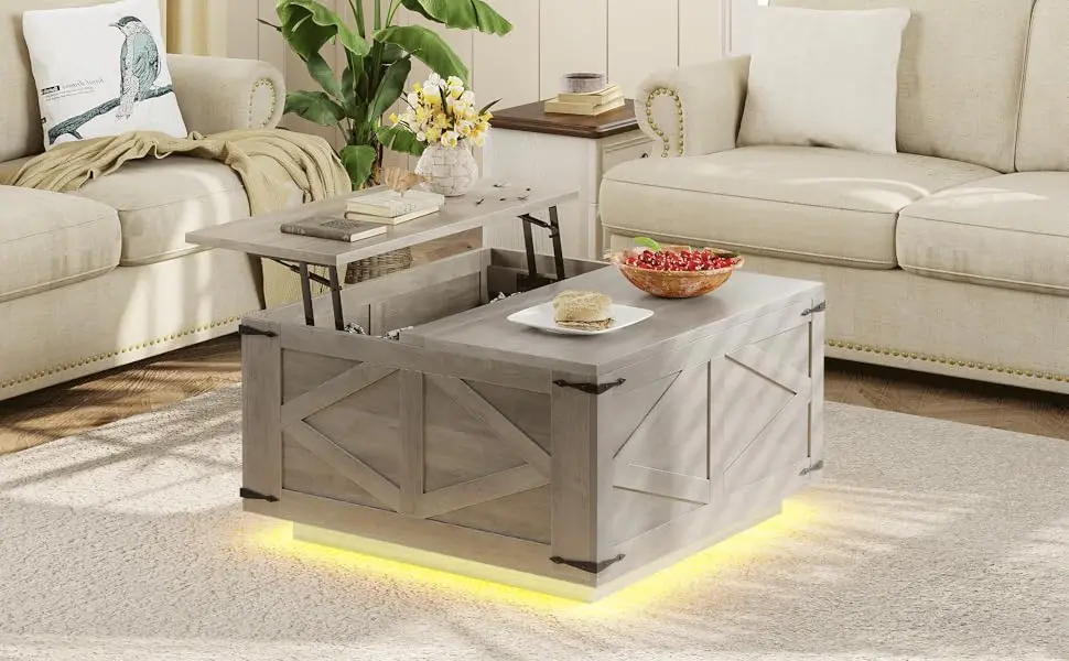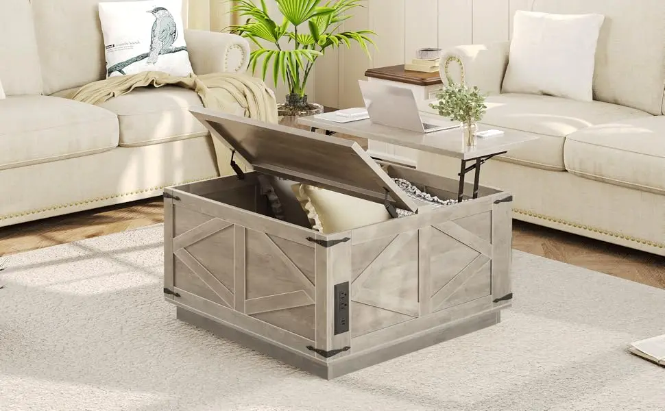 This lift top coffee table is adorned with a natural wood finish, an easy-to-match rustic color and a high level of perfection in the details to complement modern, rustic, industrial, or vintage decor.