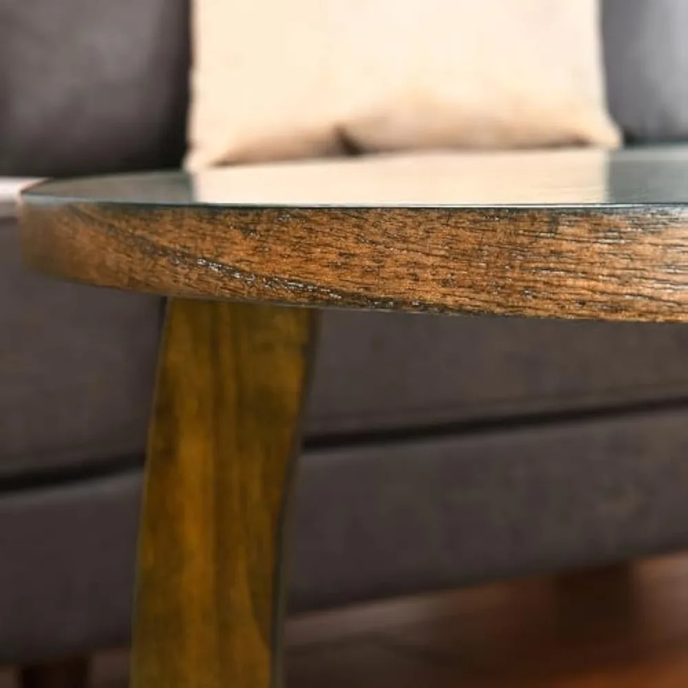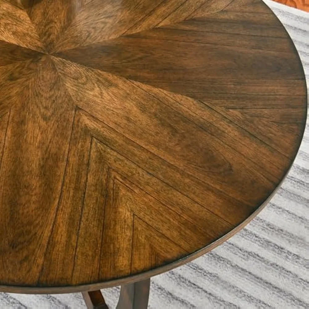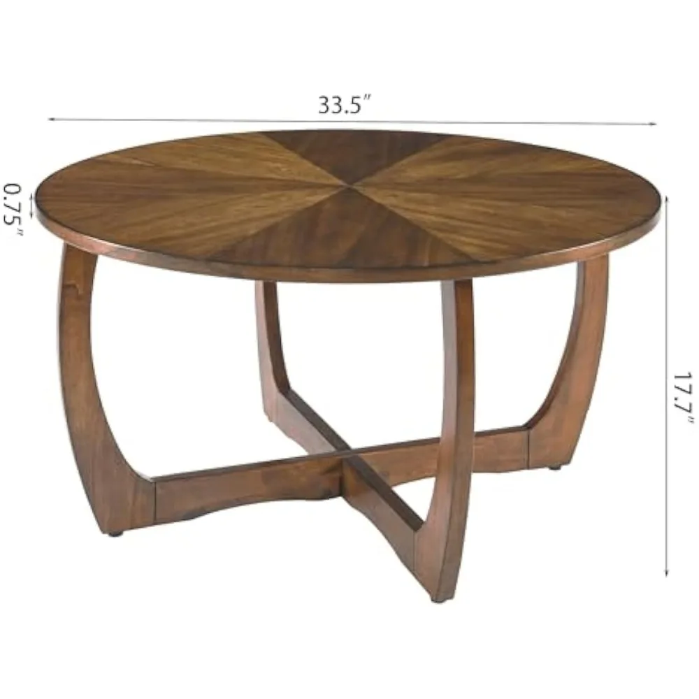 - ALL SOLID WOOD CIRCULAR COFFEE TABLE: Made of selected solid wood, Whether it is the Emission line shaped table top or the cross shape legs, making this circular coffee table durable enough. Stable to support stuff on the table(Loading Capacity: 250lbs).It is a essential matter to your living room.