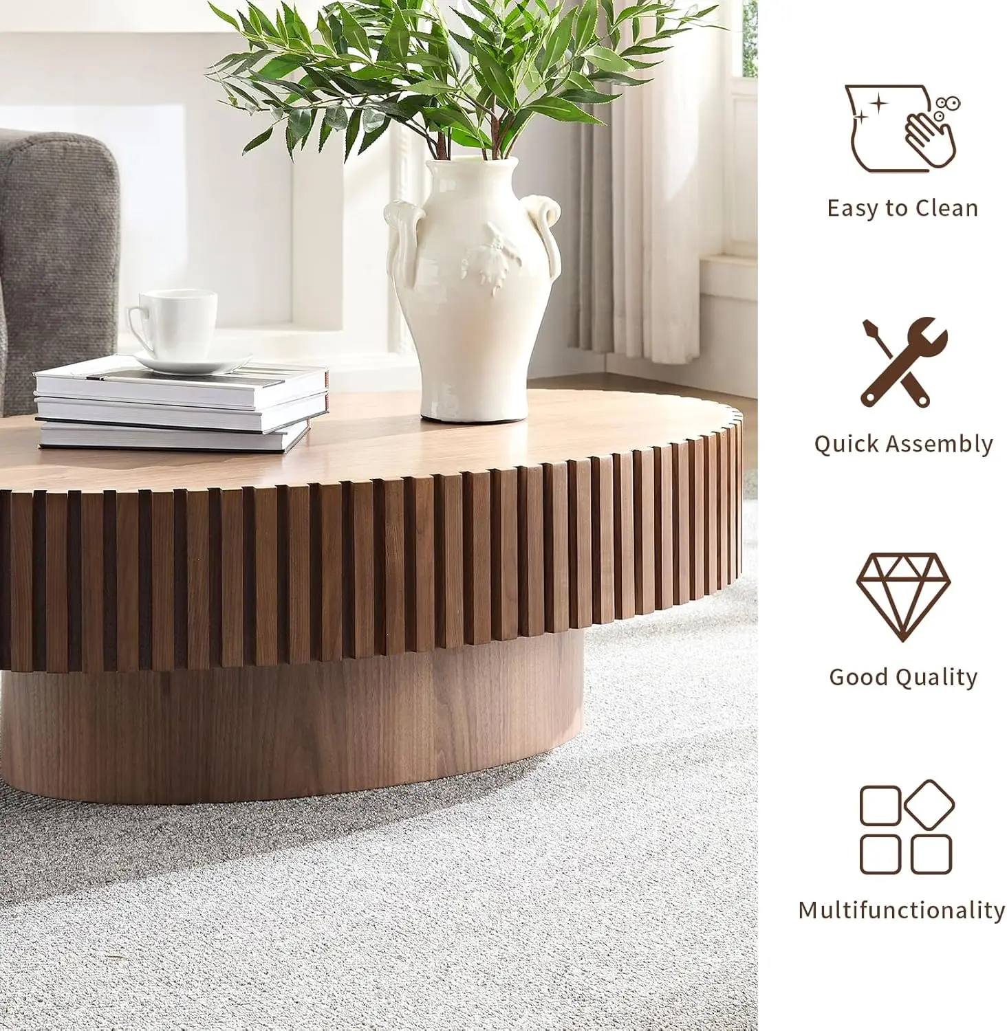 - [Multi scenario use] This coffee table is designed in an oval shape and measures 43.31 inches in length, making it an ideal choice for the living room. The coffee table has a small footprint and can be placed and used in every room at home, making it an ideal choice for small apartments. This coffee table can also be placed in offices, lounges, balconies, and so on. There are various colors to choose from, and you can choose a coffee table that matches your unique style.