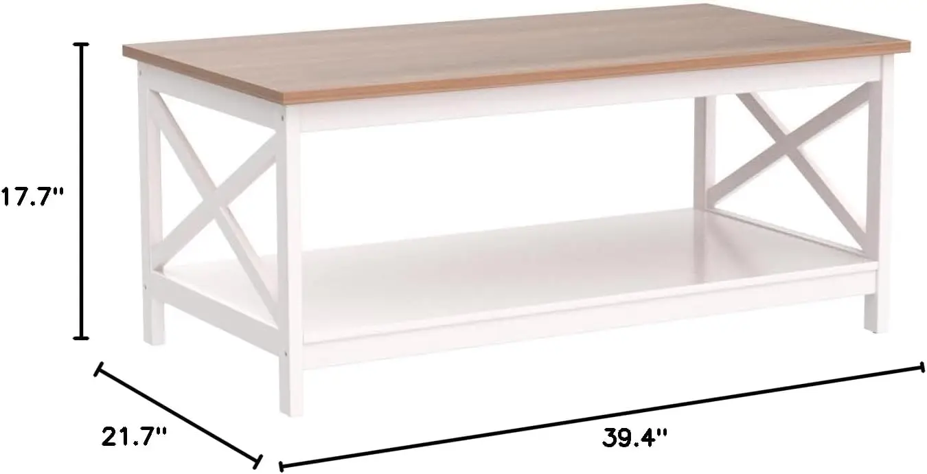 - 【2 Tier Shelf & Farmhouse Feel】The coffee table size is 39.4″D x 21.7″W x 17.7″H. Perfect for before the sofa or in your living room. The farmhouse color matches with any other furniture and gives a good look to the room
