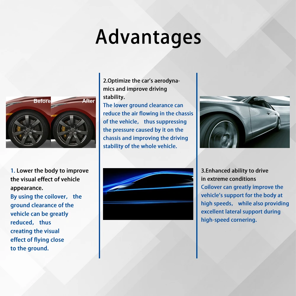 1.Coilover will lower the ride height! If you do not need to lower, please buy a normal shock absorber!!!!