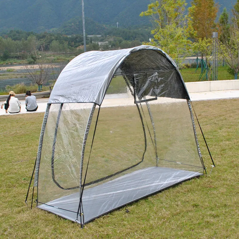 3.Bike tent expanded size: 78.7inch(W)×31.5inch(D)×65.0inch(H), enough space can accommodate two adult bicycles. 4.Arched shape allows rain and snow to slide off to keep the items safe, dry and out of the elements.