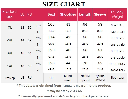 Product Size Table: