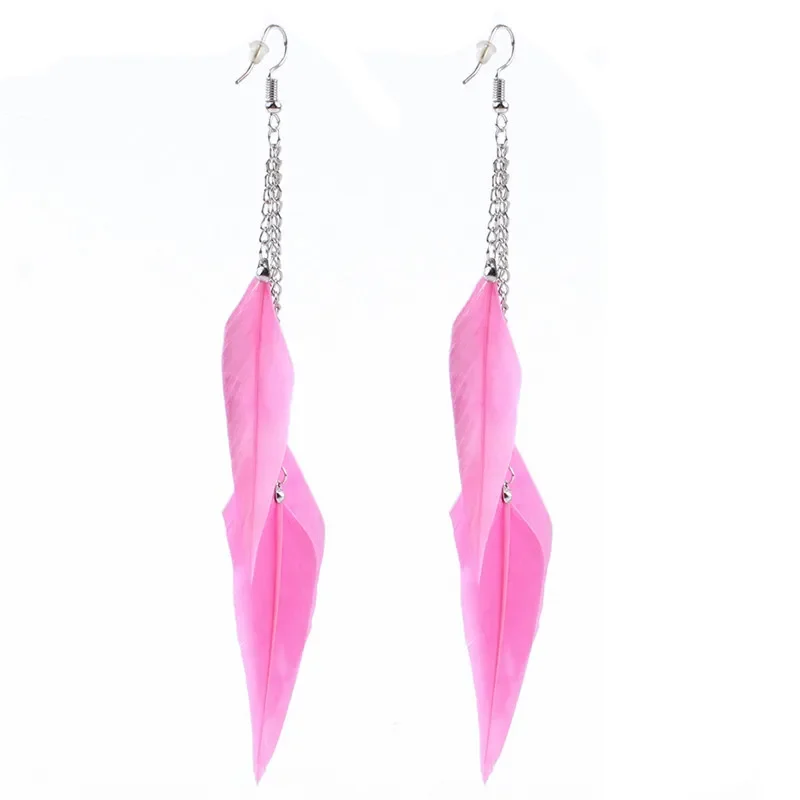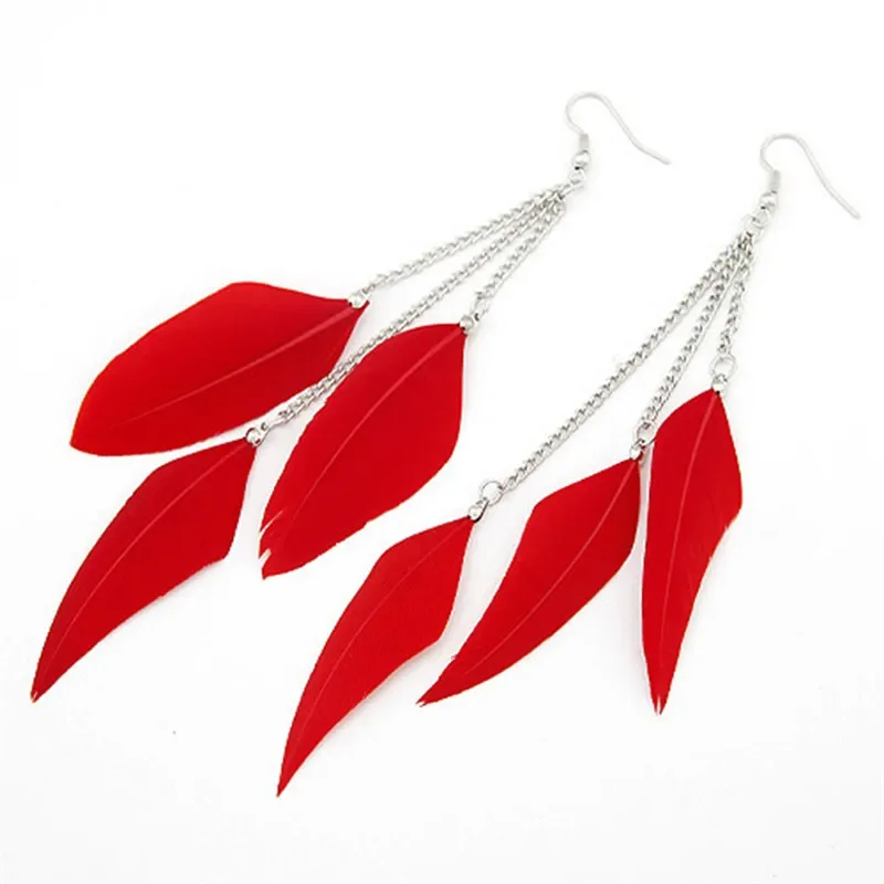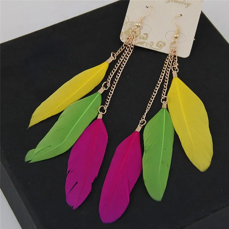 Colorful Feather Earrings Tassel Dangle Long Earrings For Women Brincos Bijoux Jewelry Wedding Earrings Bride Jewelry