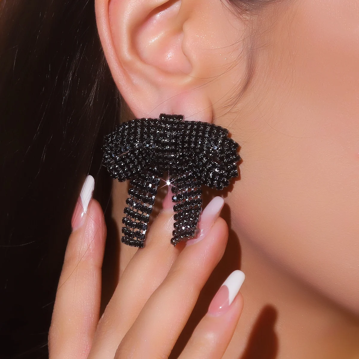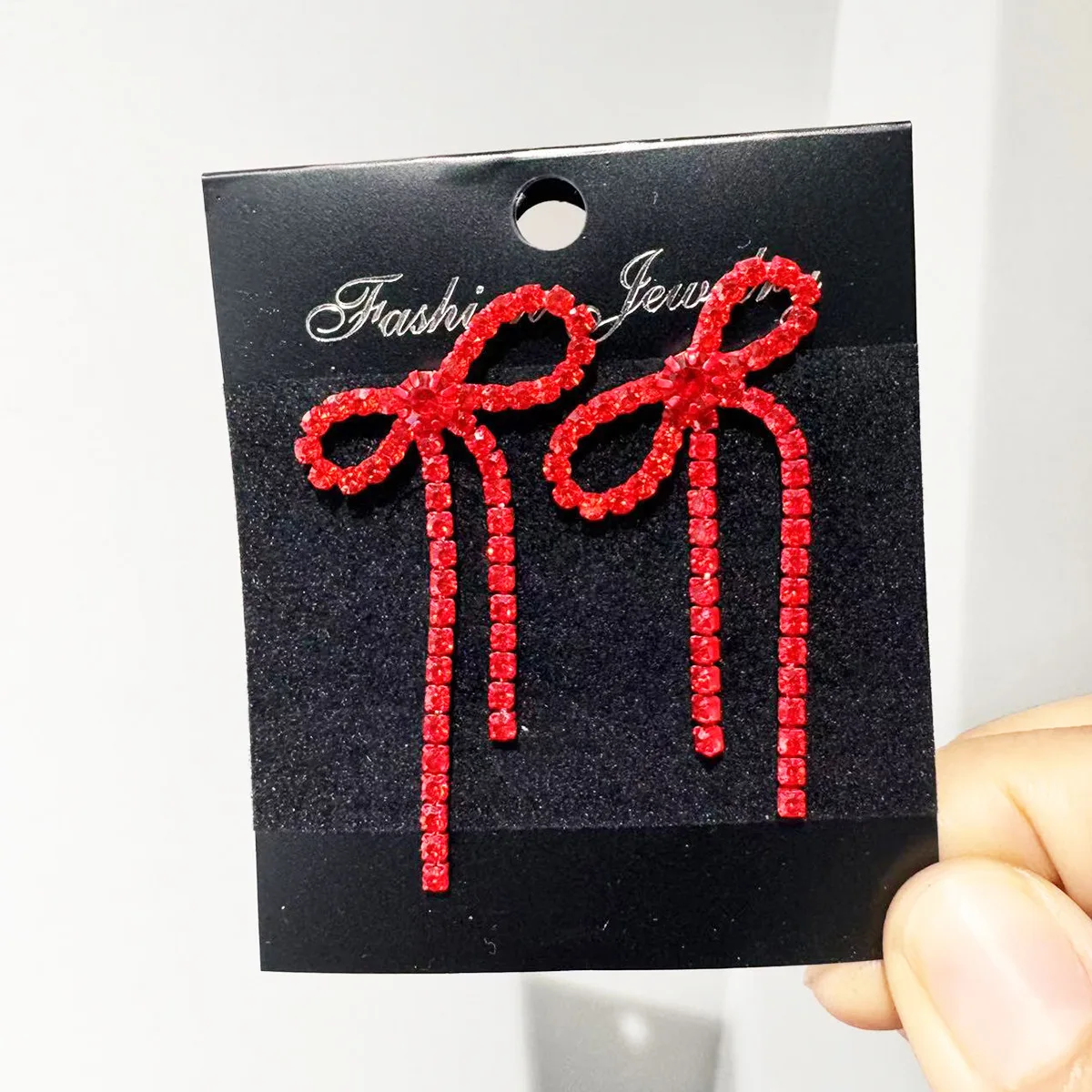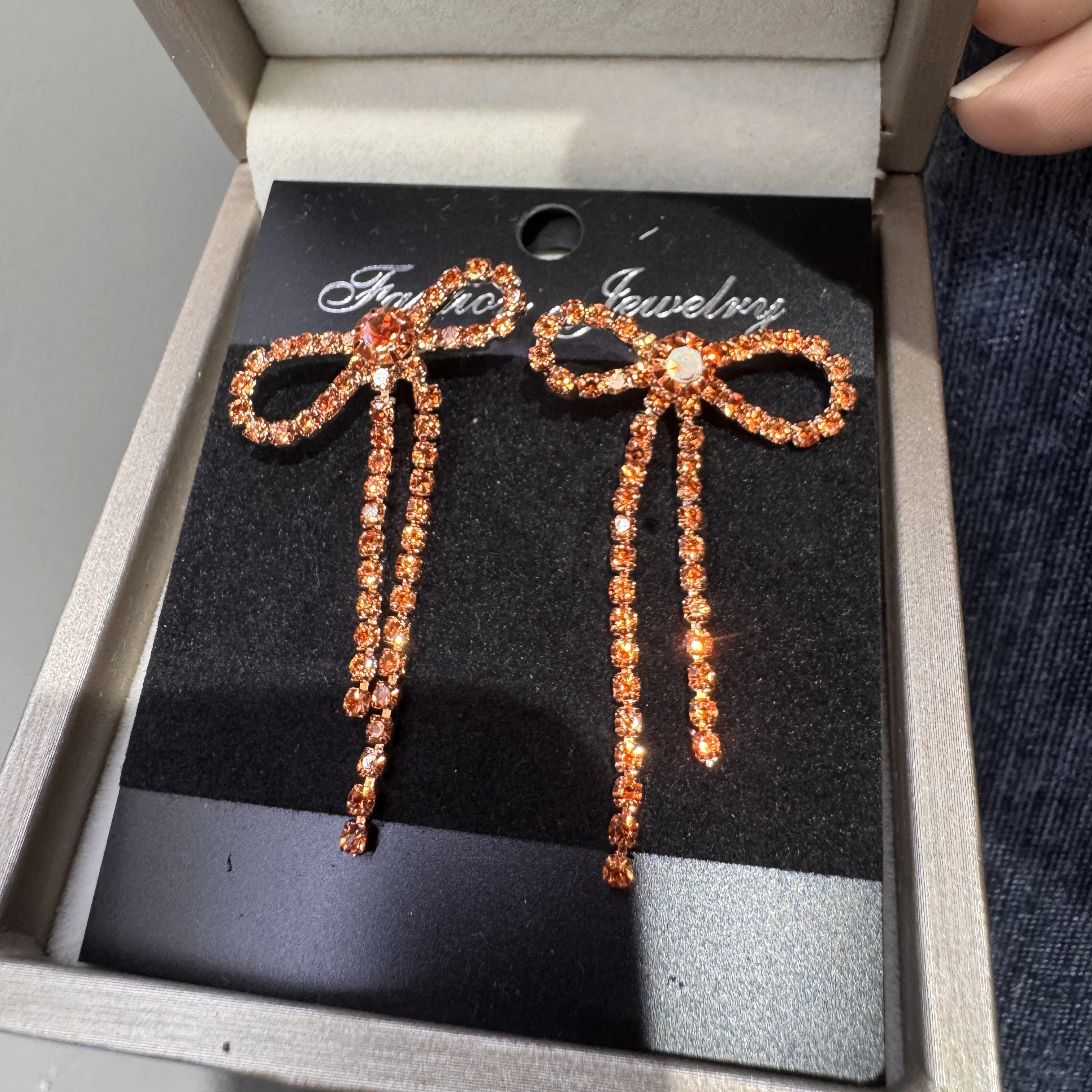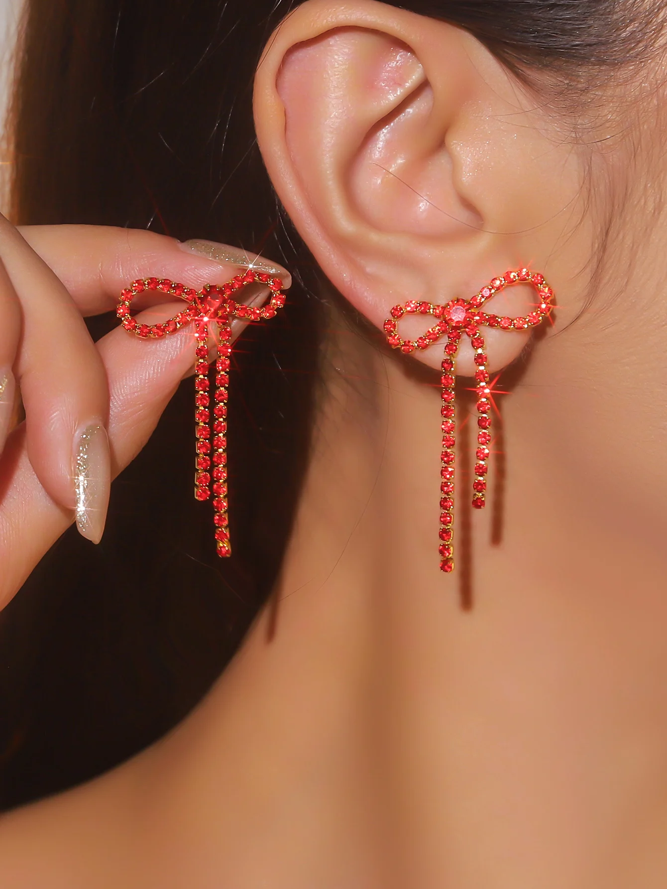colourful Bow Earrings for Women Rhinestone Long Tassel Earrings Black Stainless Steel Dangle Earrings Cute Sparkly Jewelry
