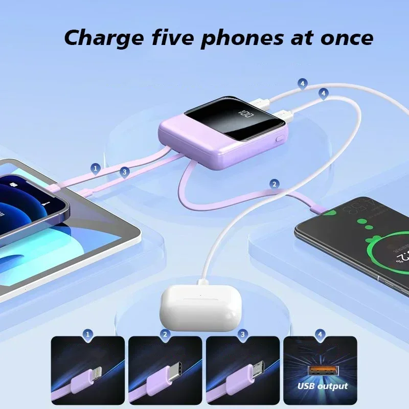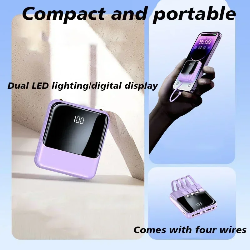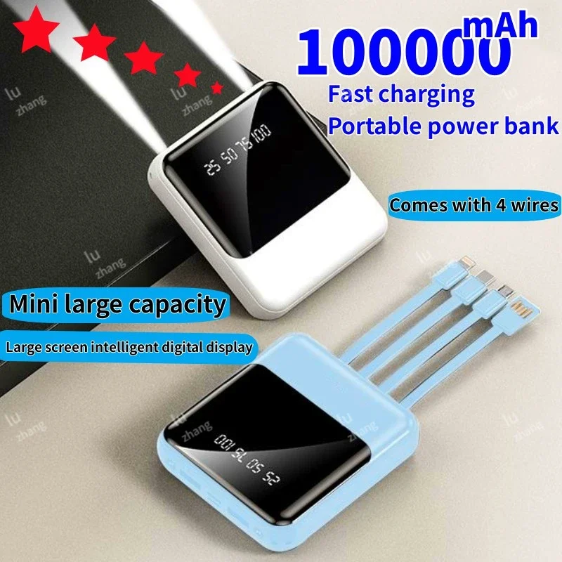 Comes with A 4-wire Power Bank,100000mAh,Large Capacity Fast Charging, Flash Charging, Ultra-thin, Universal Mobile Power Supply