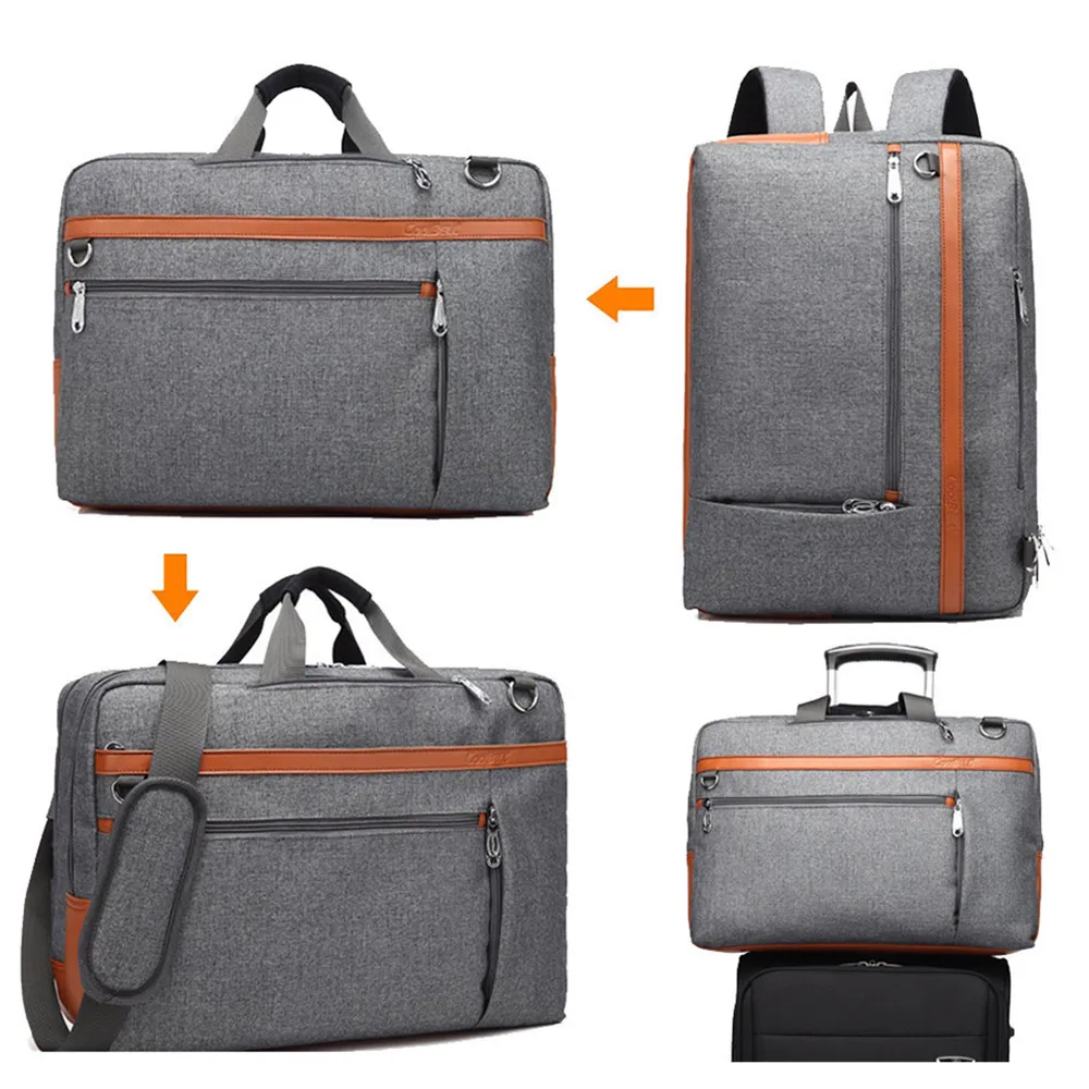 Multi-function convertible bags:Backpack, shoulder bag, briefcase.The handle can be hidden in the pocket with zipper when use it as a backpack.The backpack strap can be hidden when use it as a shoulder bag or briefcase.
