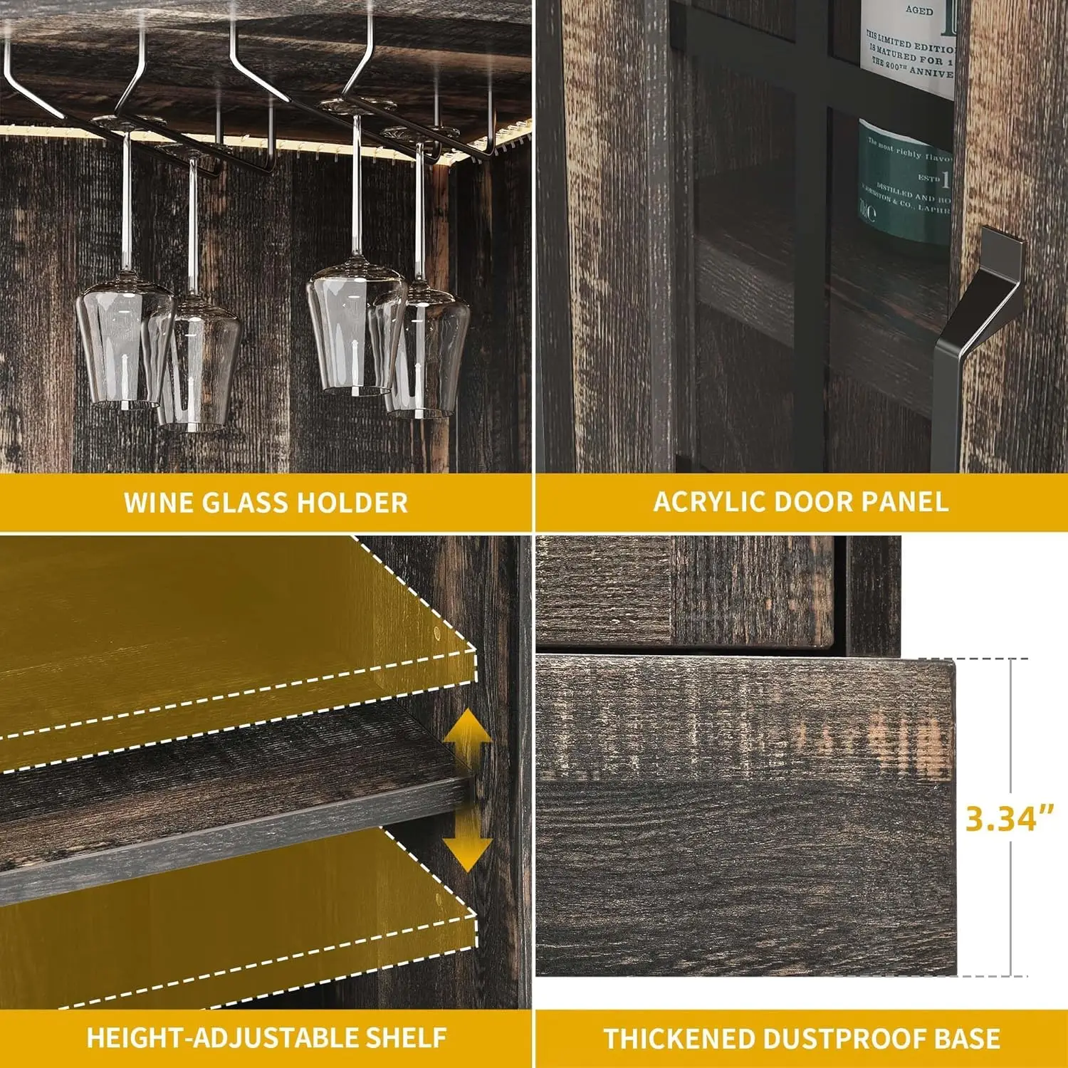 - LED Ambient Light: The DWVO bar cabinets for liquor features LED light strips with 17 colors, 4 flashing modes, and brightness adjustment for a stunning look. Ideal for wine tasting, parties, and displaying wine collections, this cabinet enhances the ambiance while allowing easy access to your bottles.