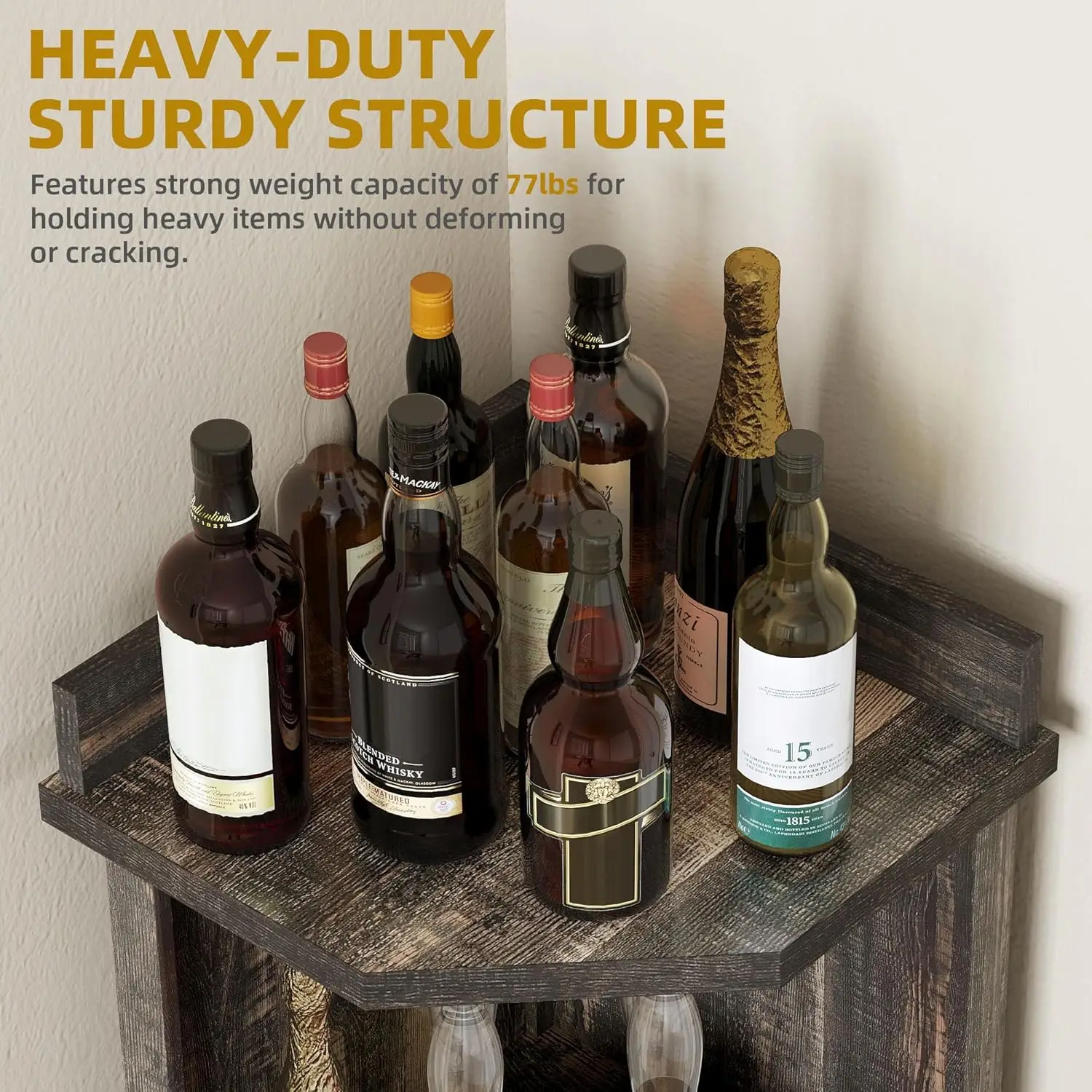 - Versatile Home Bar Cabinet: Our corner liquor cabinet are designed with 90 degree right angles to fit perfectly in corner spaces. The polygonal edges expand the storage space, providing ample and practical corner storage solutions for wine bottles, glassware and other bar essentials in the dining room, living room, kitchen or bedroom.