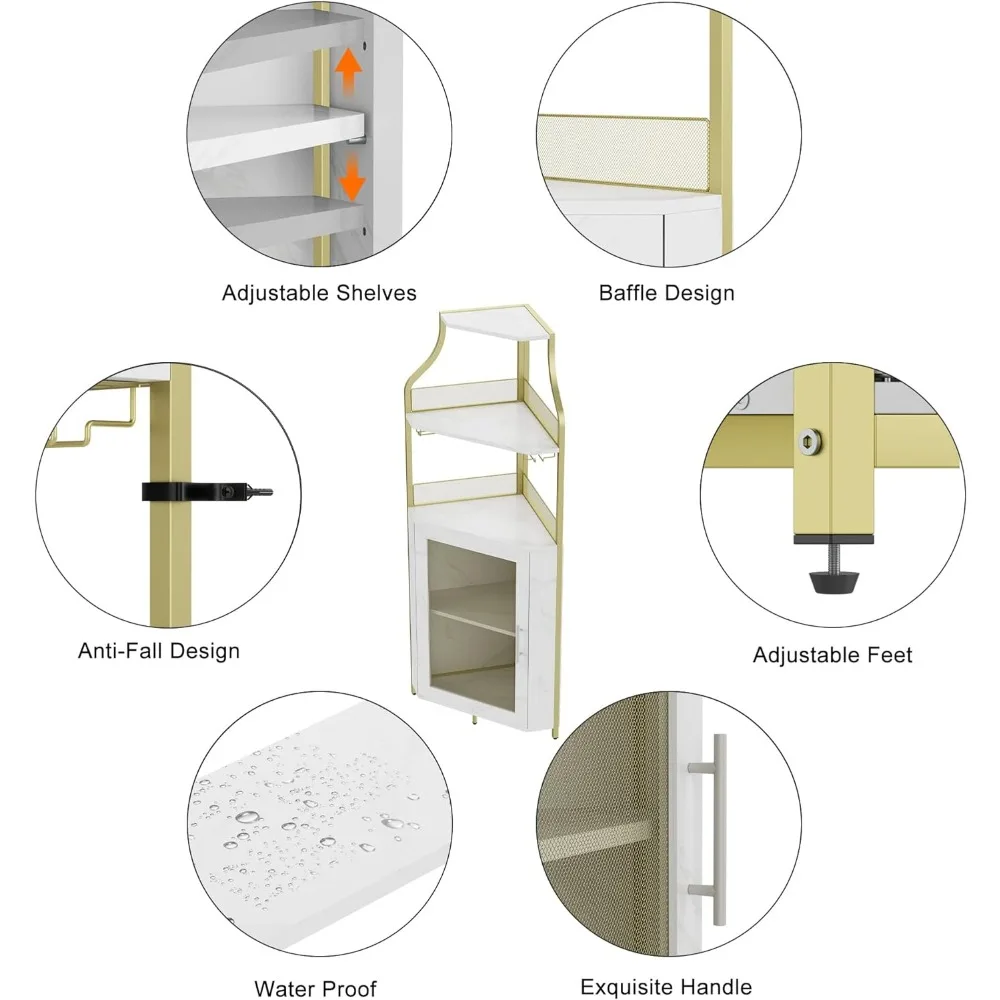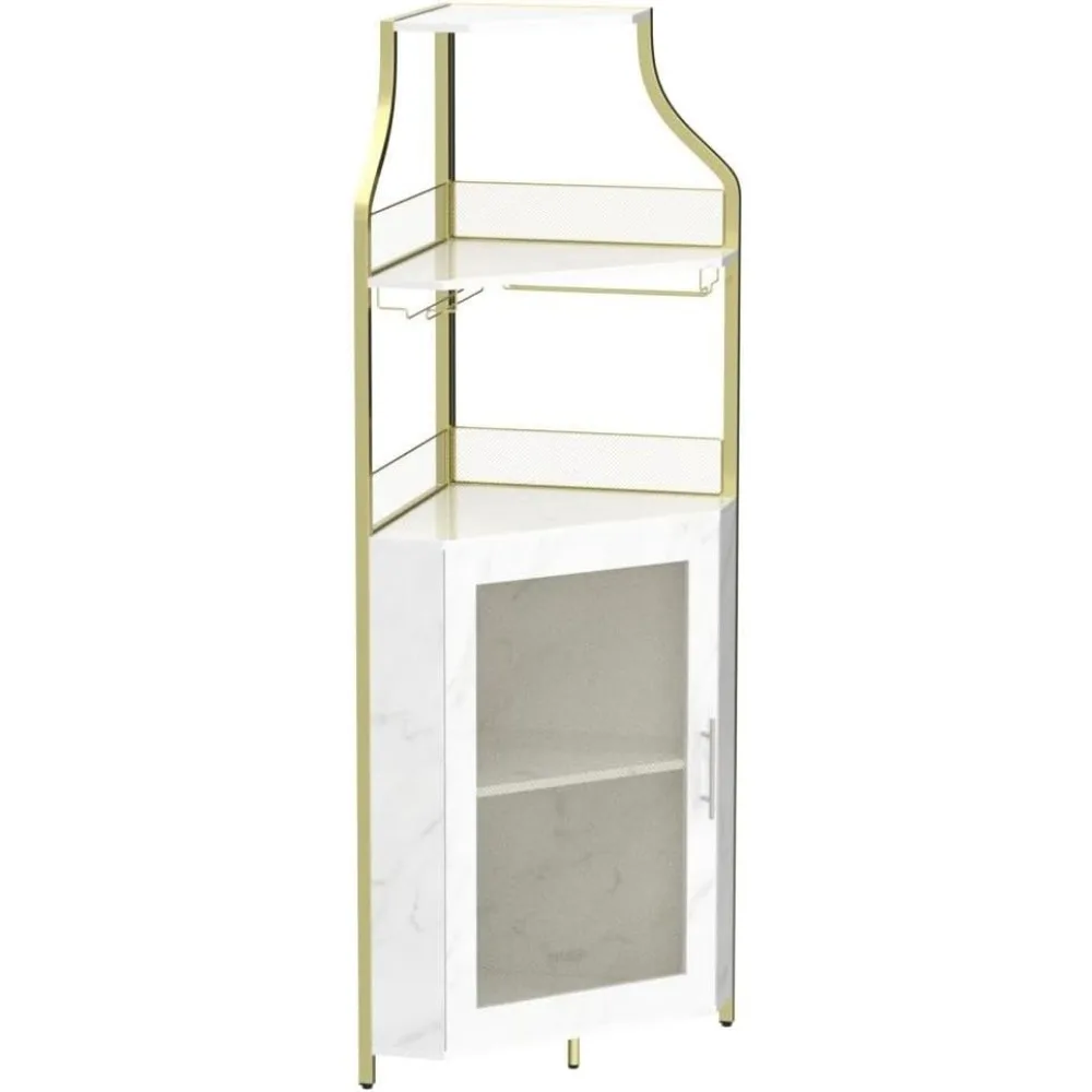 Corner Wine Bar Rack Cabinet with Detachable, Bar Cabinet with Glass Holder, Small Sideboard and Buffet Cabinet with Mesh Door