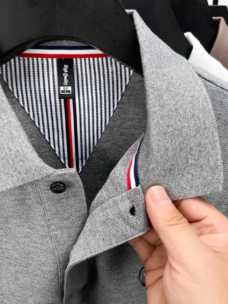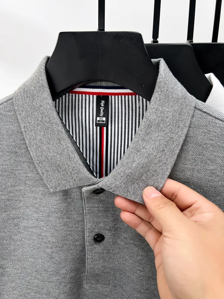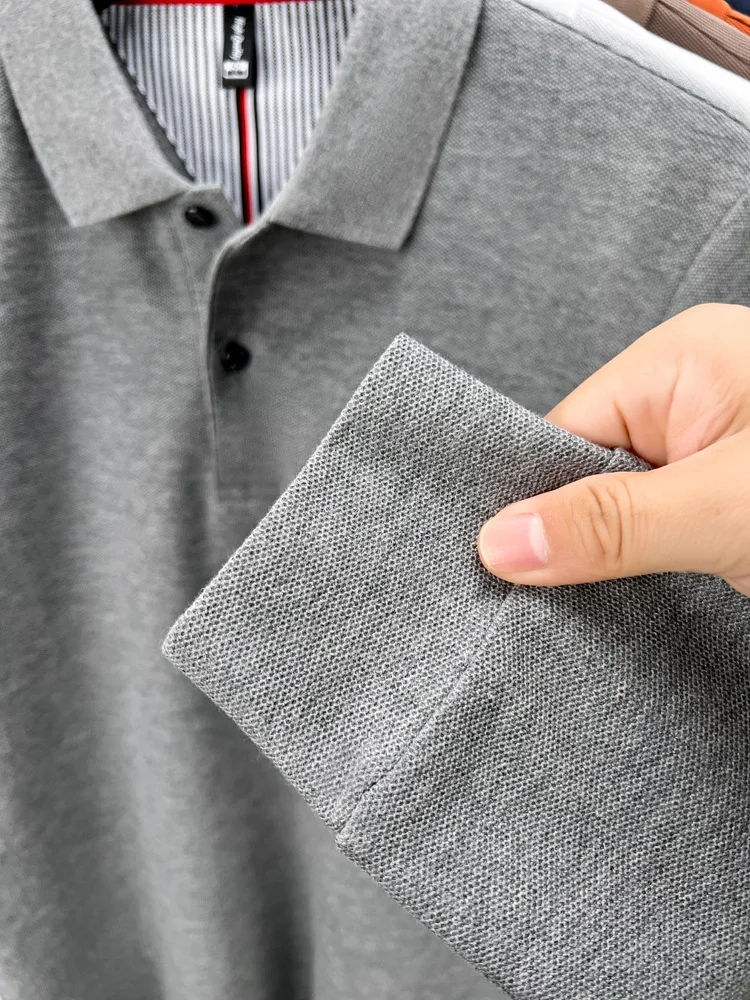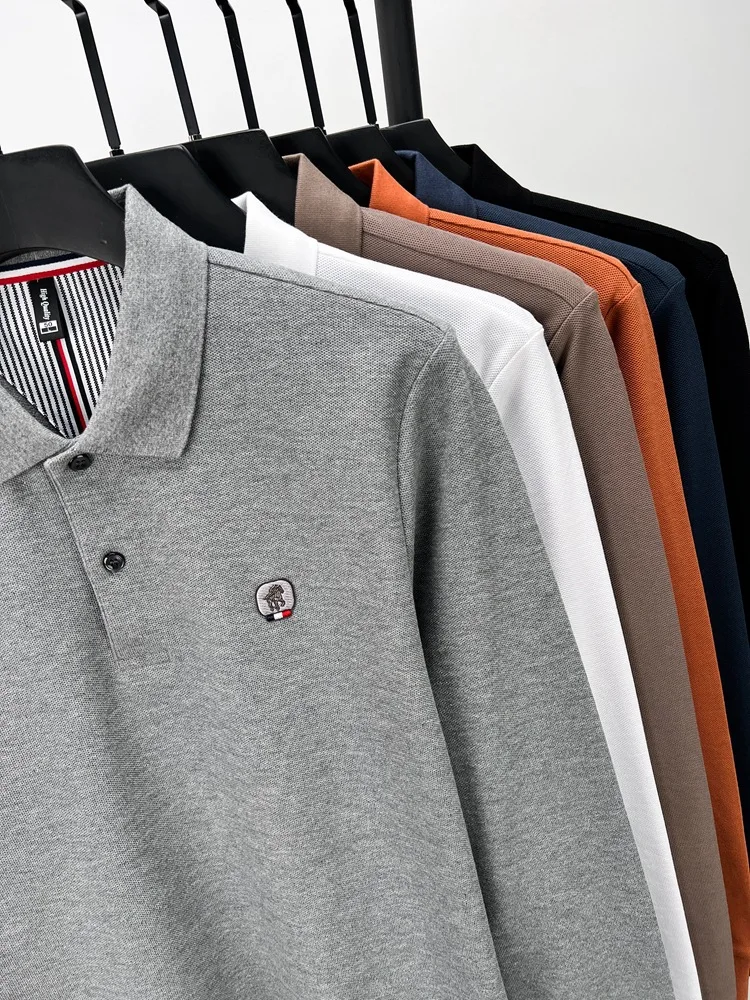 Cotton polo shirt men’s long sleeved T-shirt men’s base shirt spring autumn business casual cotton top loose fit