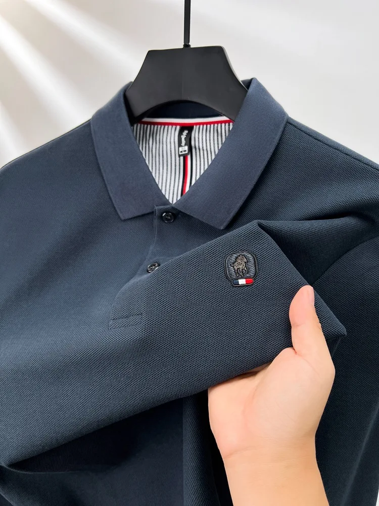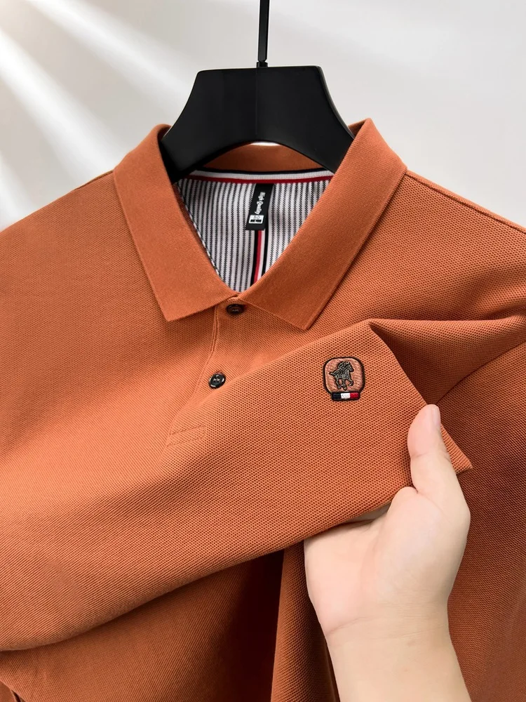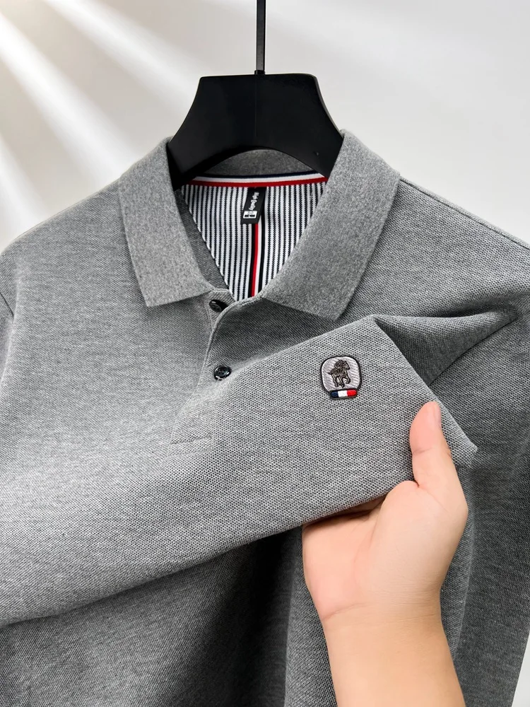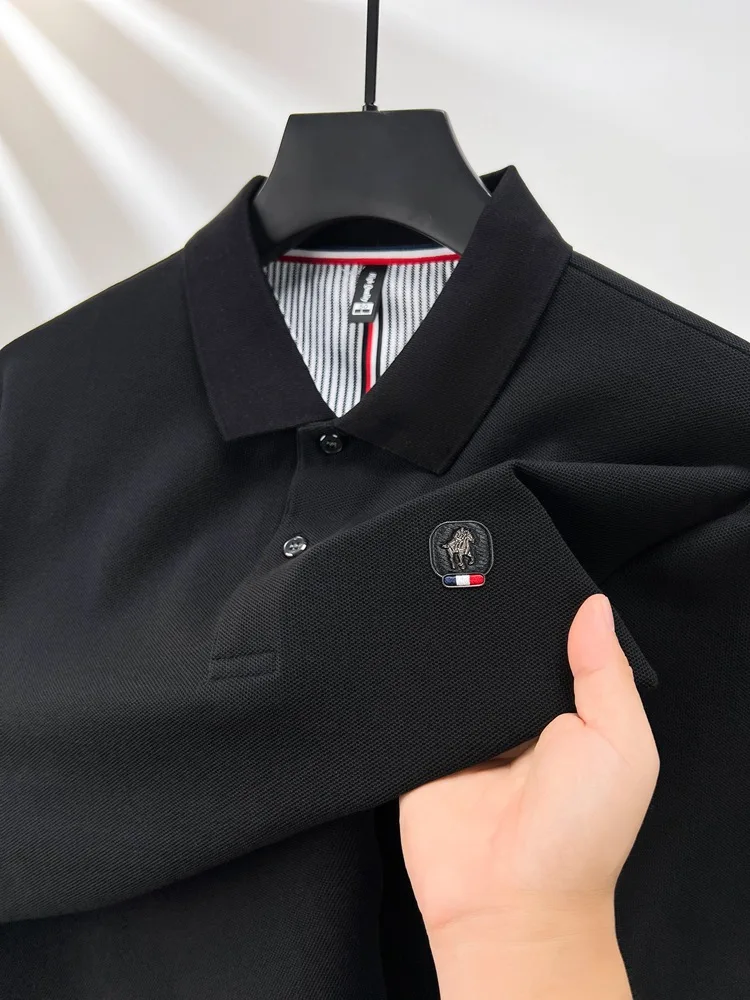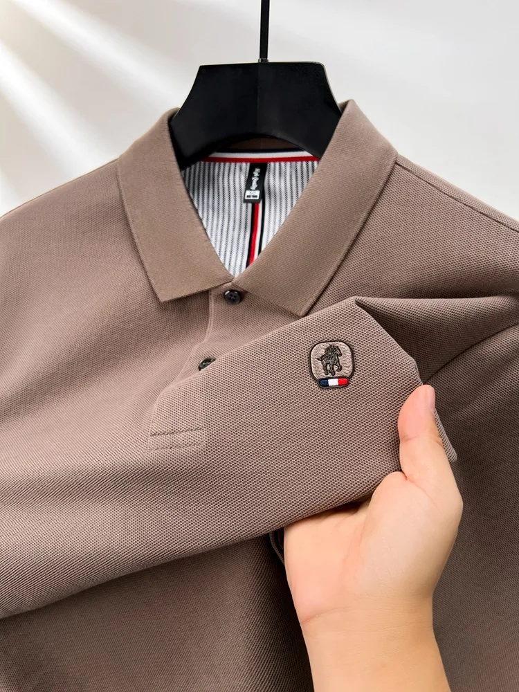 Cotton polo shirt men’s long sleeved T-shirt men’s base shirt spring autumn business casual cotton top loose fit