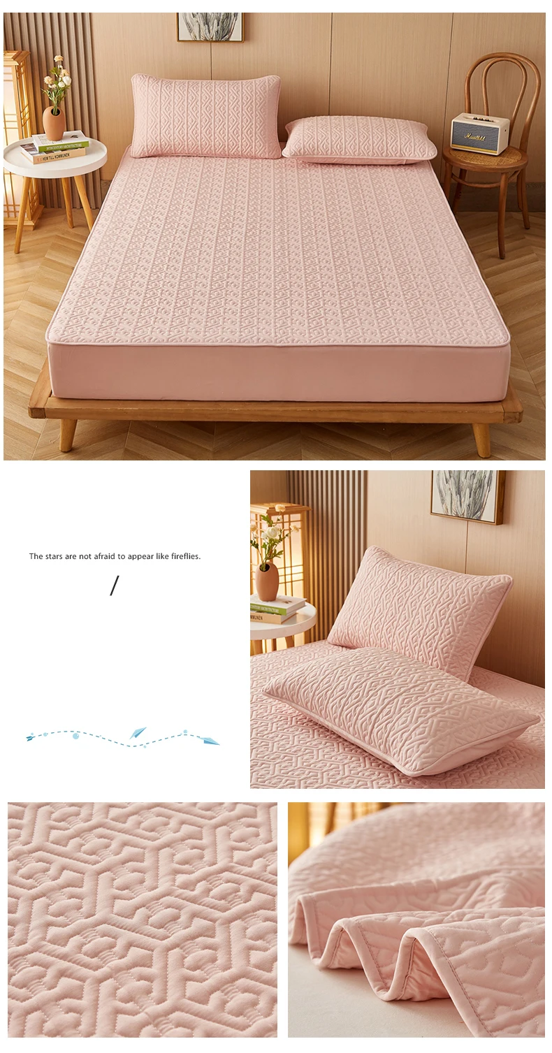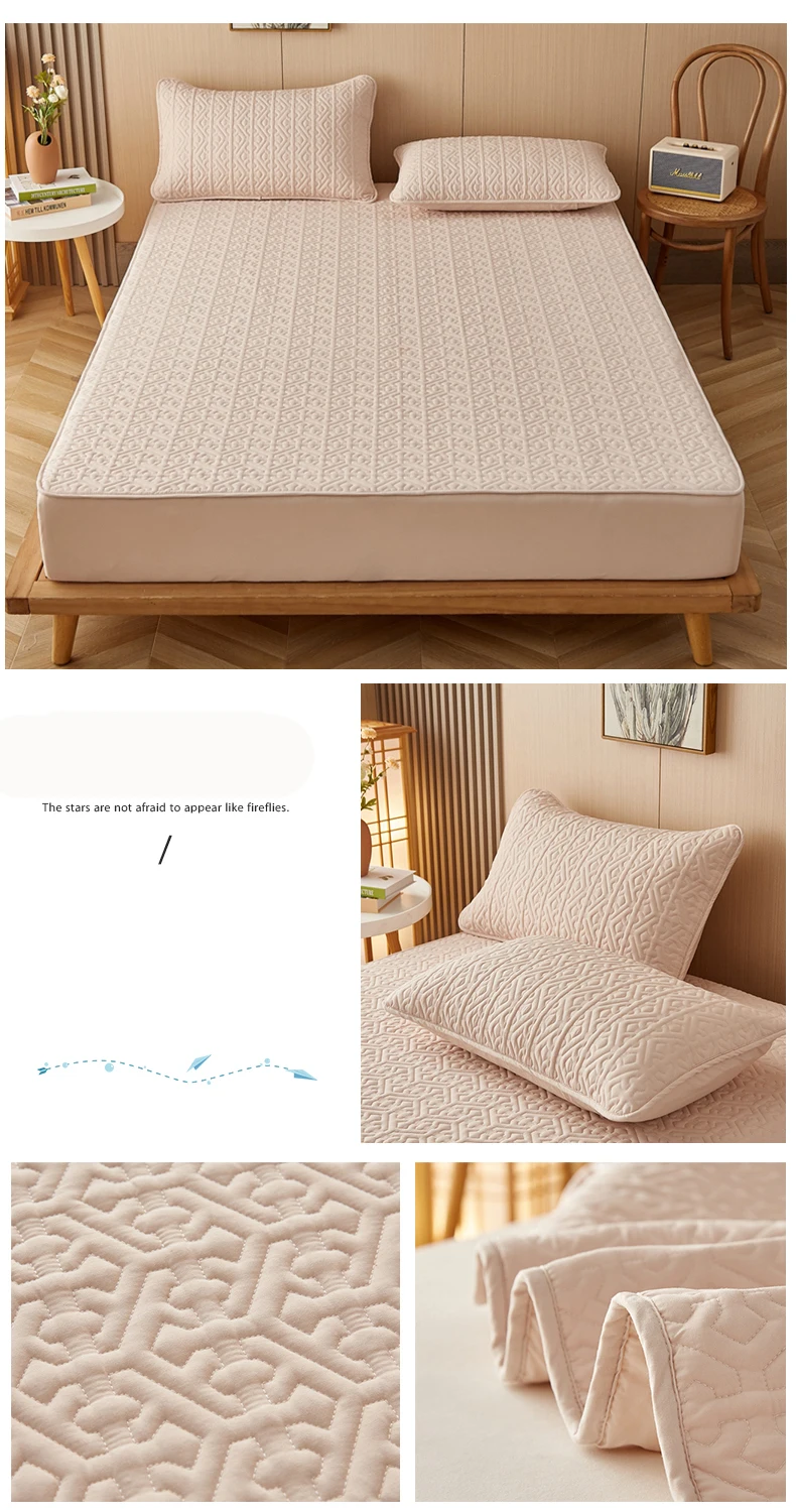 Cotton Thickened Mattress Cover, Quilted Fitted Mattress Pad Protector, Hypoallergenic Soft Bed Topper Bedding 140/160/200x200cm