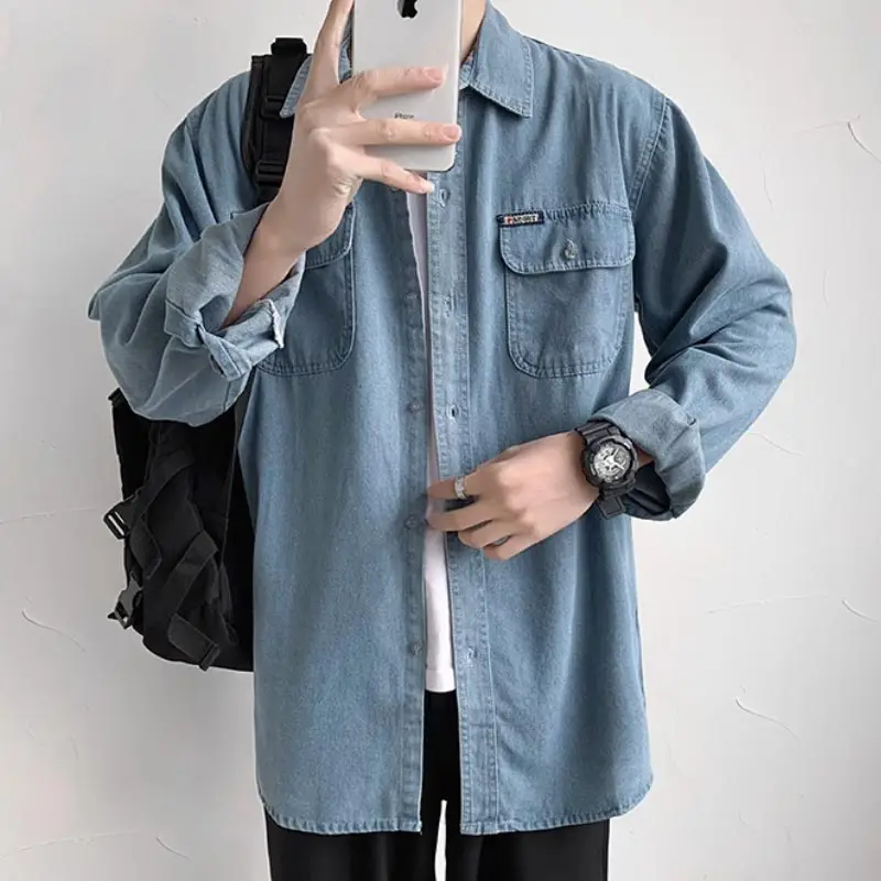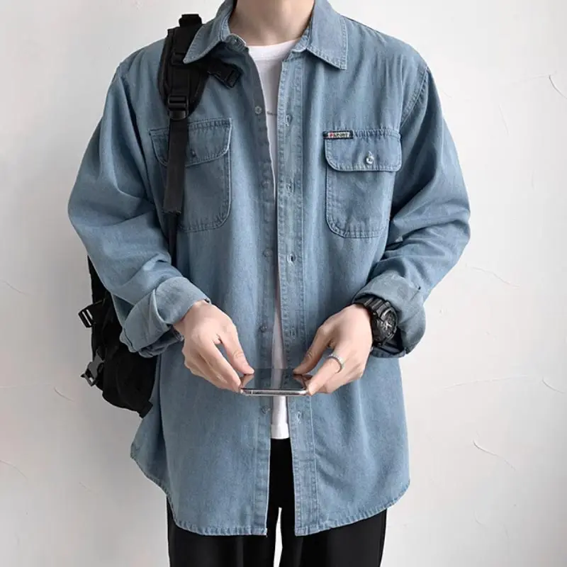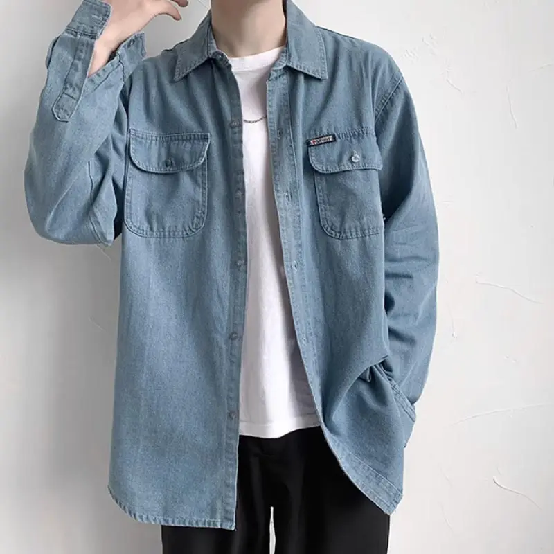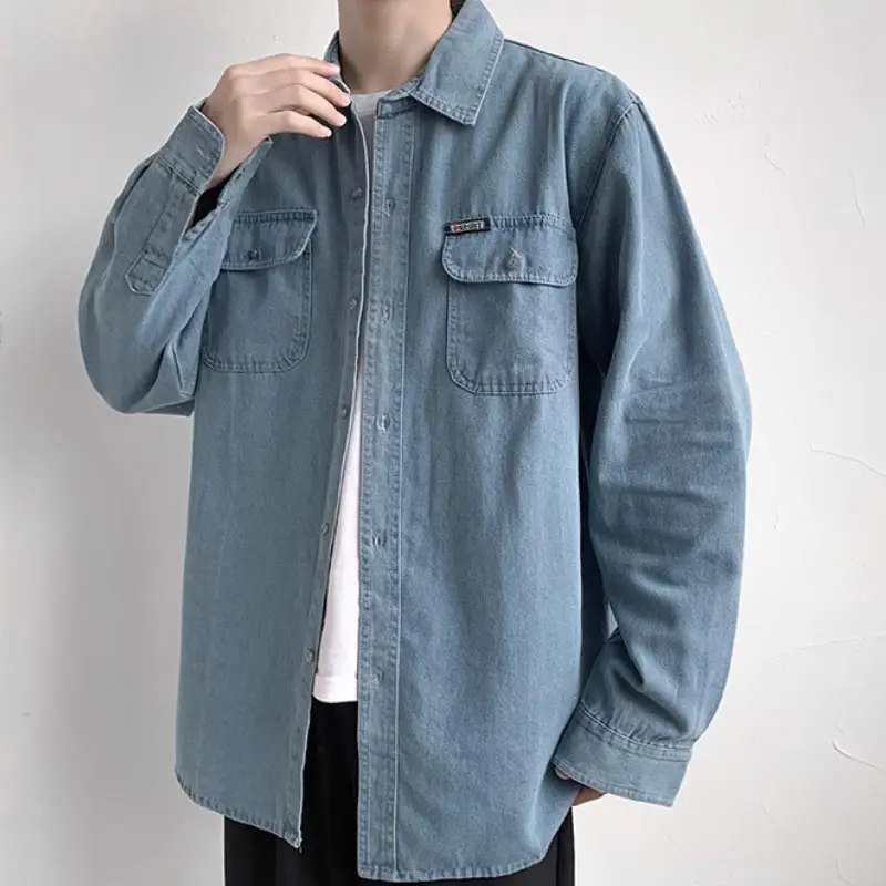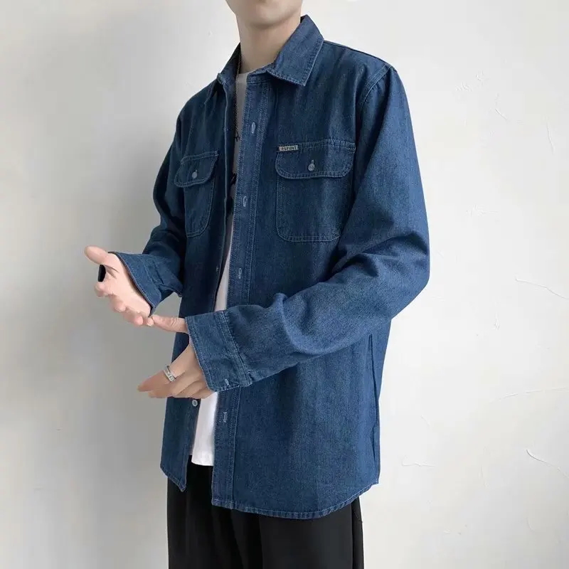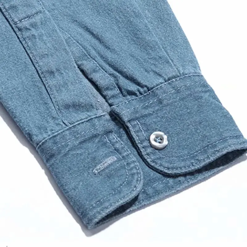 Cotton ultra-thin denim long sleeved shirt, men’s construction site welding anti scald and wear-resistant work clothes