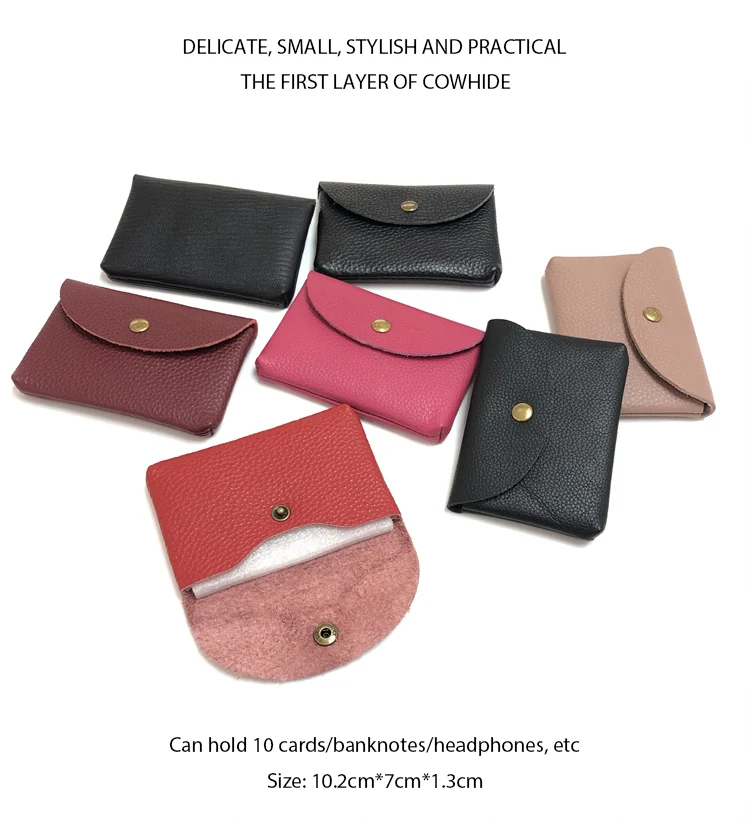 Cowhide Genuine Leather Leather Mini Envelope Change Pocket Simple Buckle Card Bag Women’s Coin Wallet Bank Card Earphone Bag
