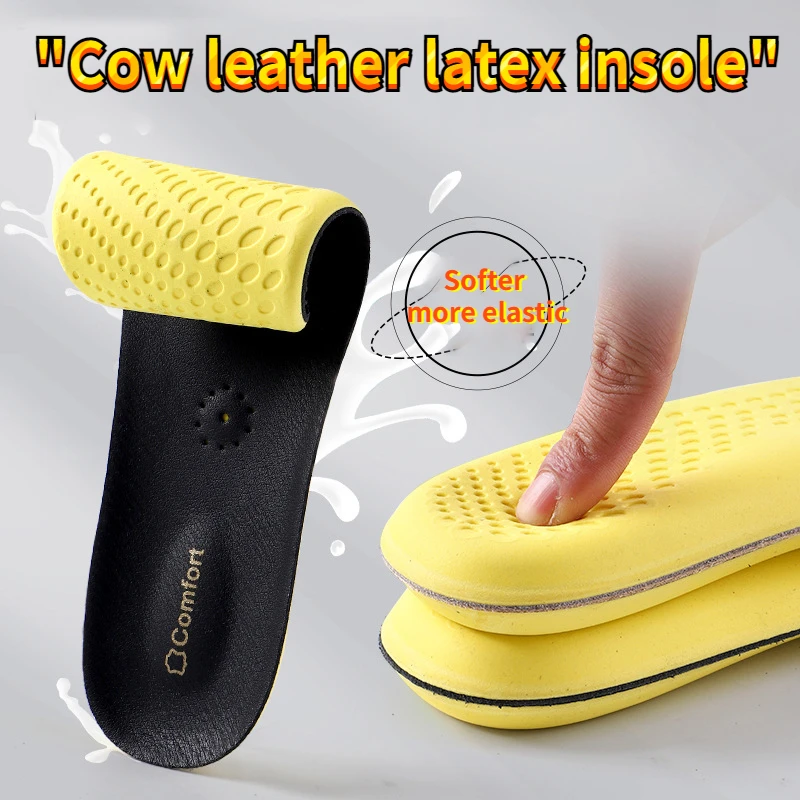 Cowhide Insoles Soft Leather Latex Breathable Sports Insole Shock Absorbing Plantar Fasciitis Inserts Arch Support Shoes Pads
