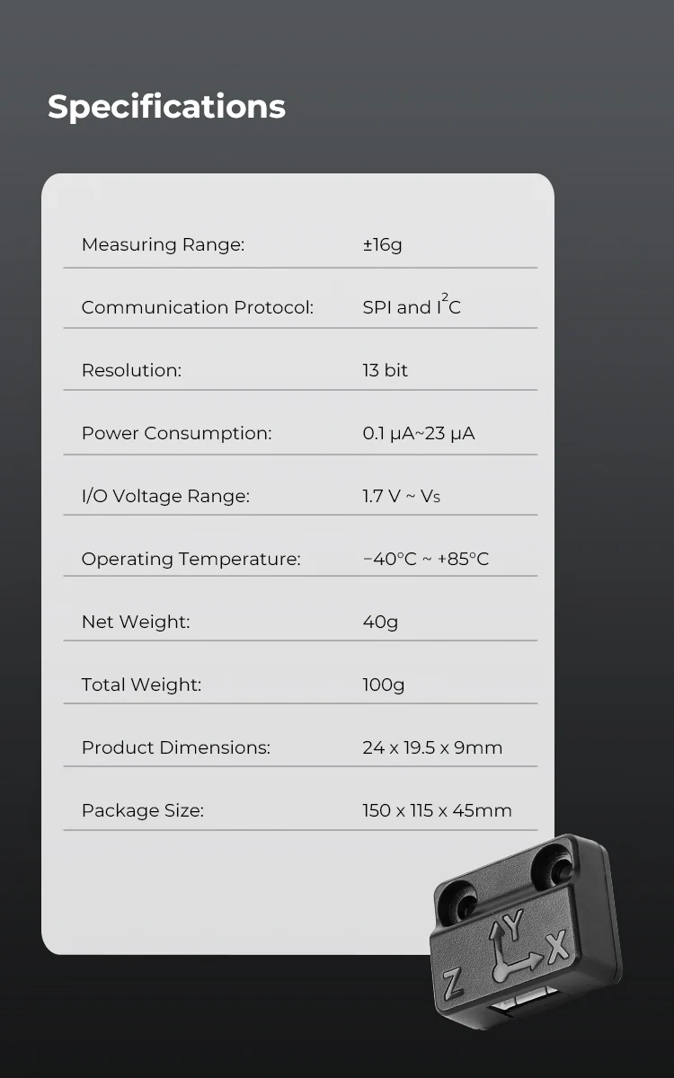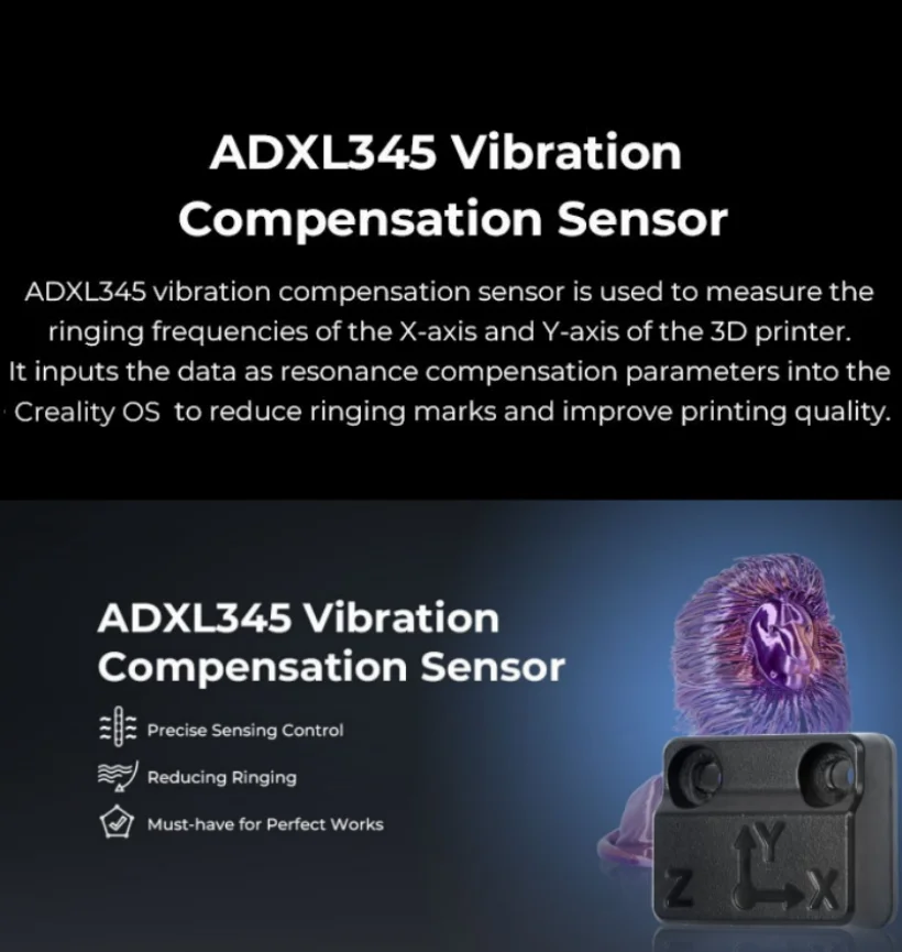 ADXL345 Vibration Compensation Sensor is used to measure the ringing frequencies of the X-axis of the 3D printer.It inputs data as resounance compensation parameters into the Sonic pad to reduce ringing marks and improve printing quality