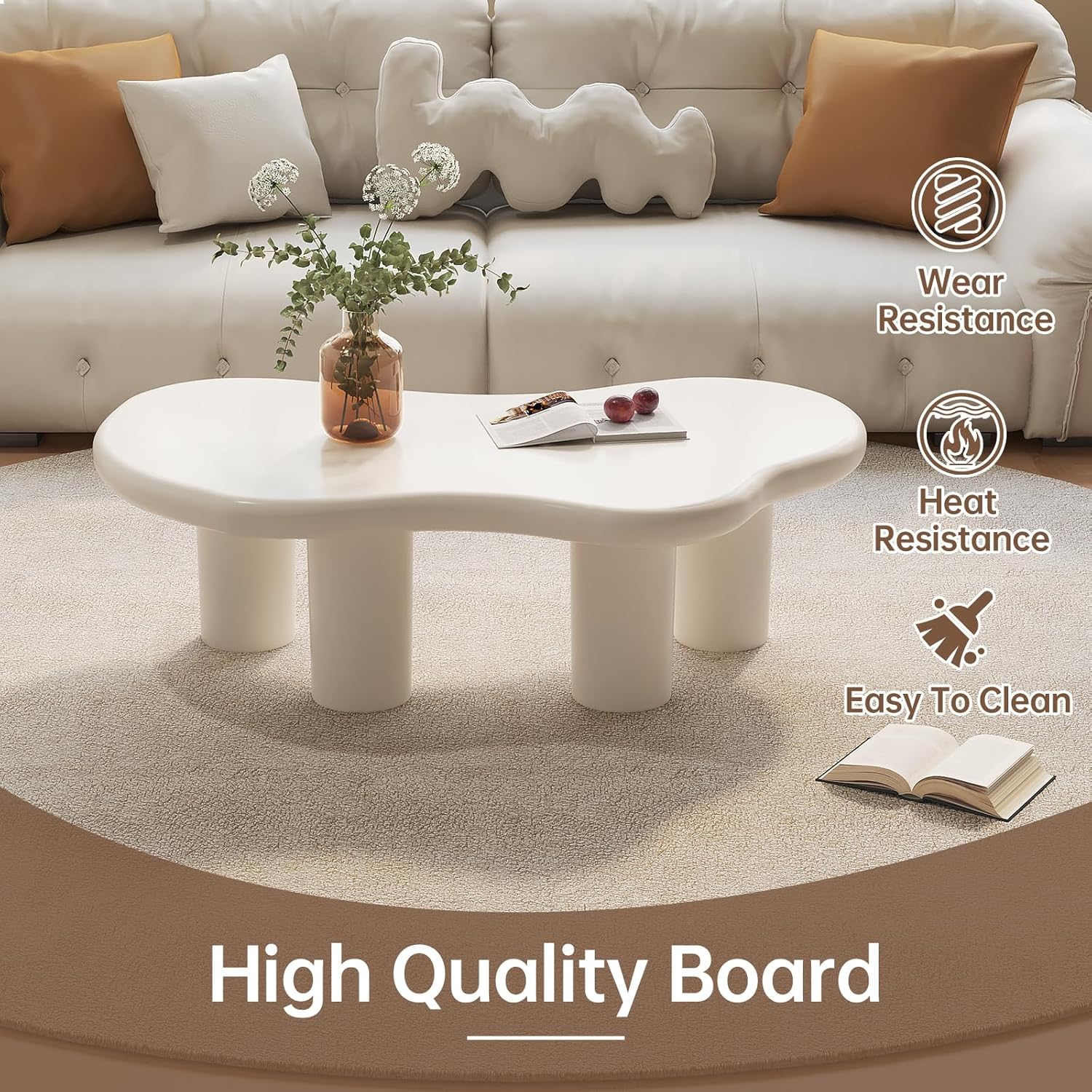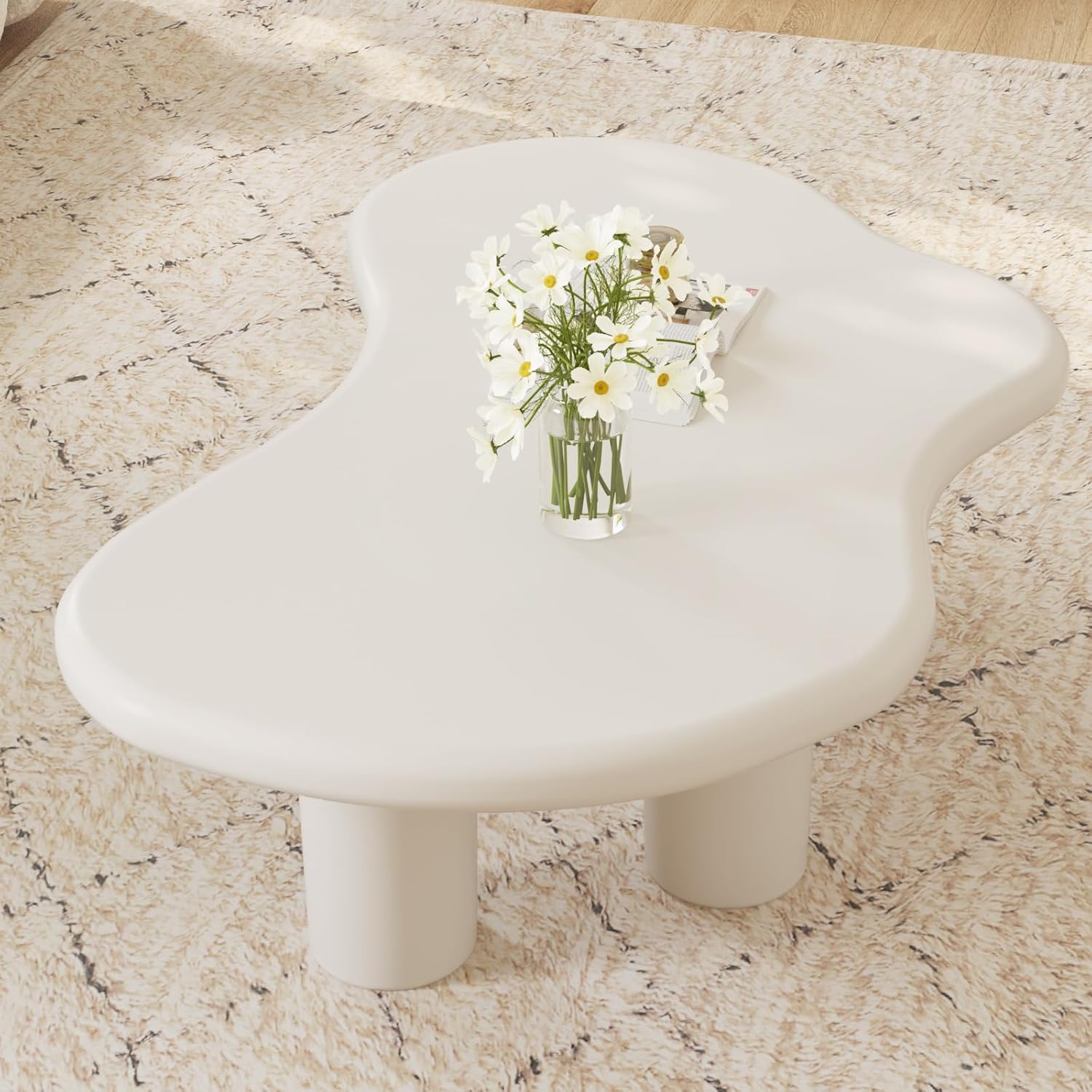 Cream White Cloud Shape Coffee Table, Modern Living Room Low Coffee Table, Modern Wavy Center Table, Irregular Funky Nordic Tea