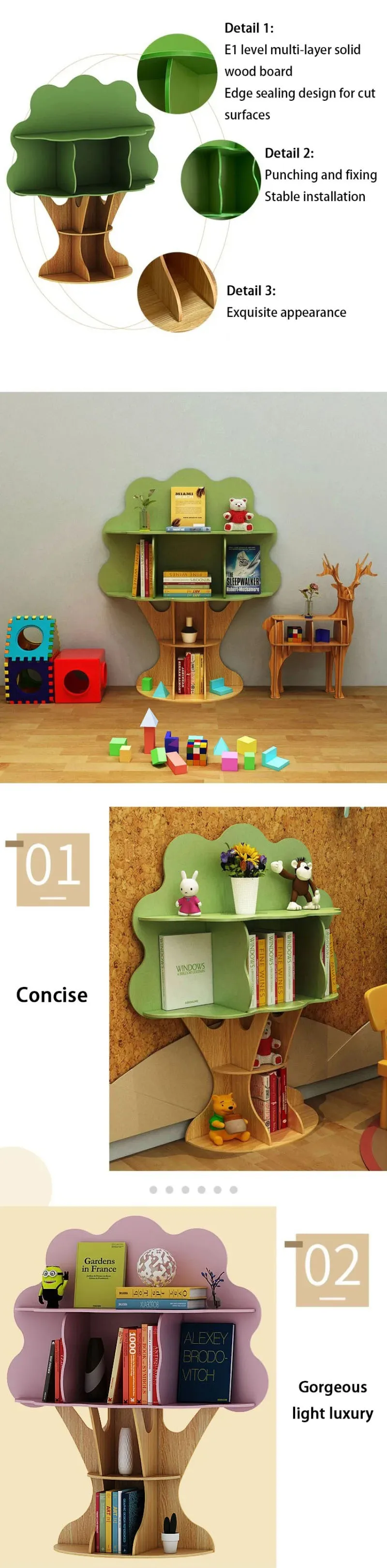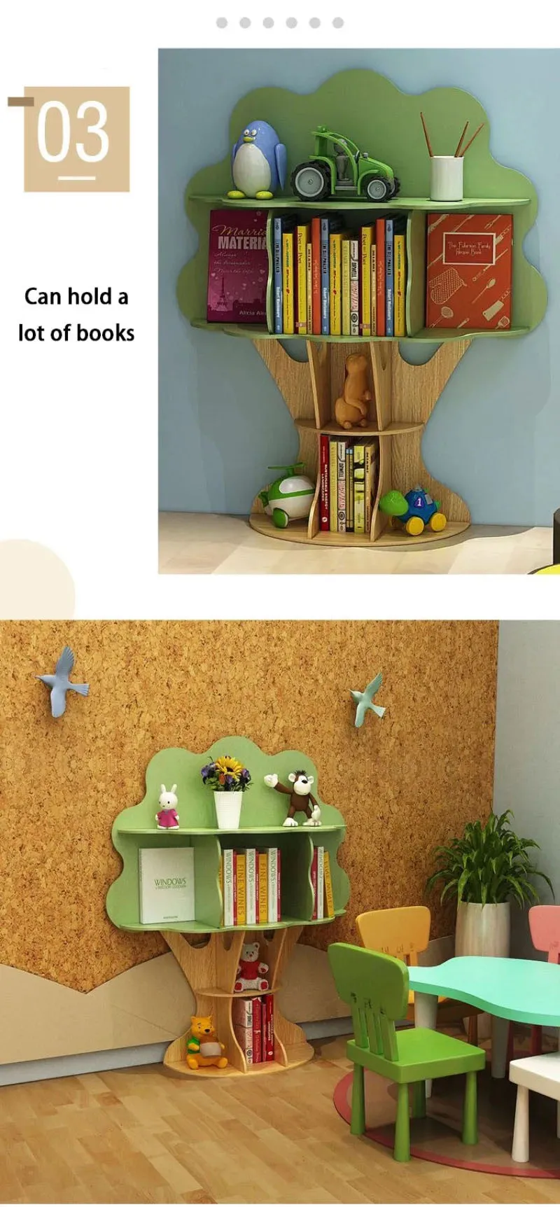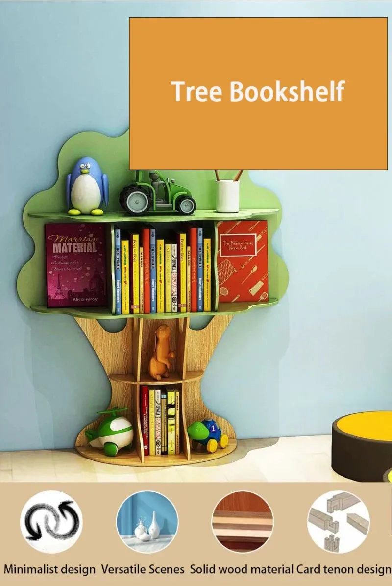 Creative Cartoon Children Bookshelf Standing Tree Shaped Storage Rack Kindergarten Bookcase Decorative Display Cabinet Shelf