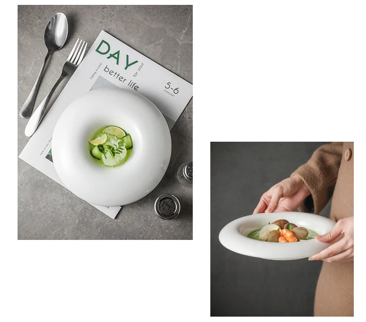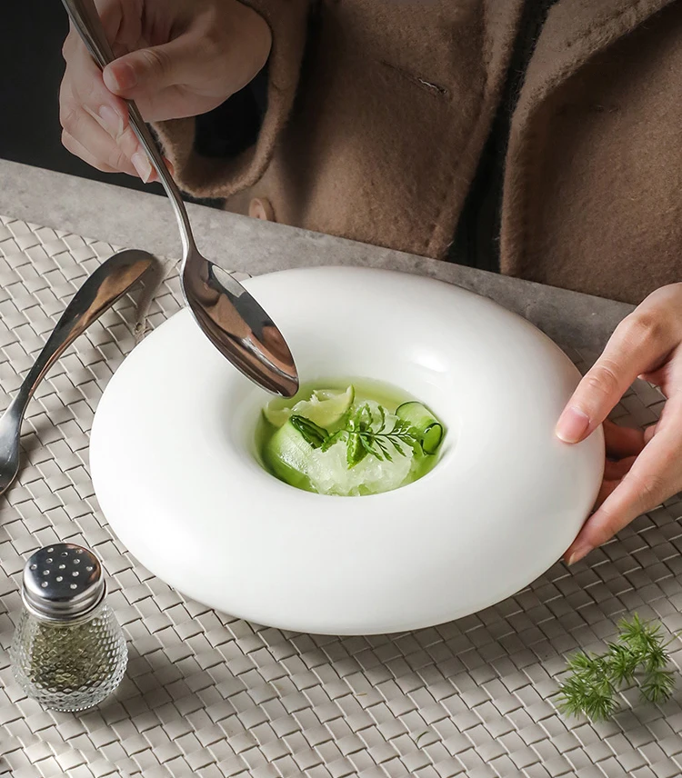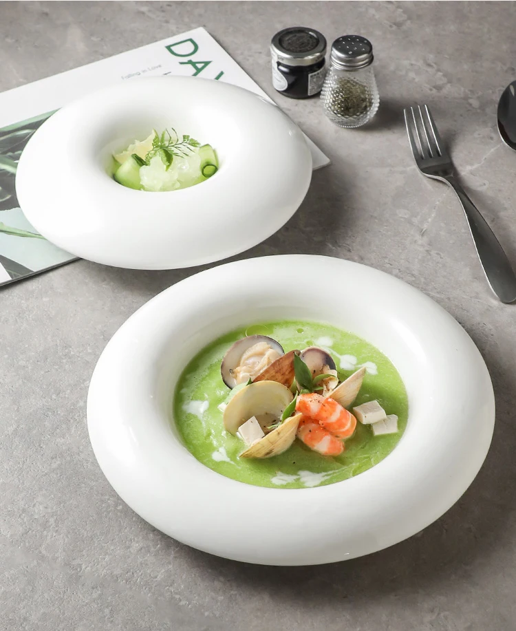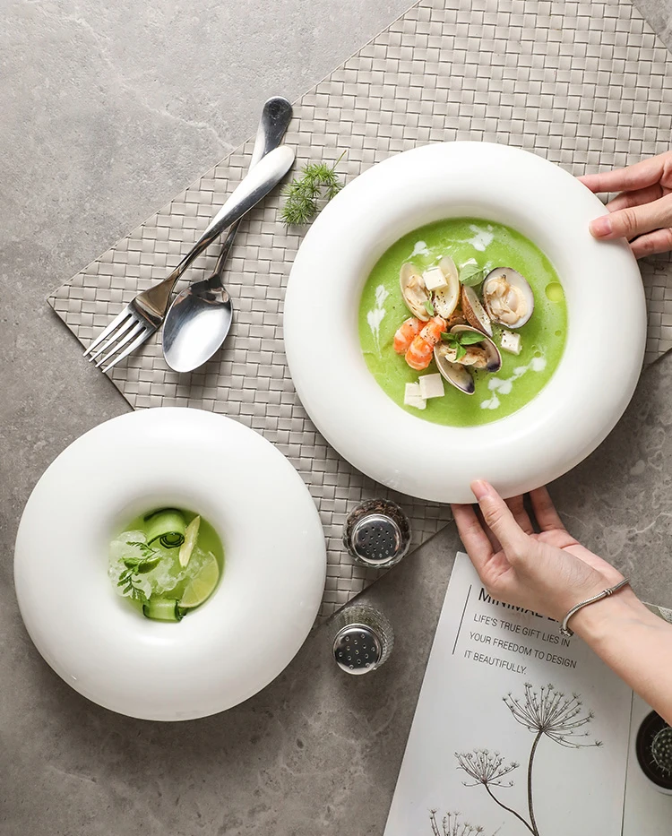 Creative Round Ceramic Pasta Ramen Bowls Fruit Salad Plate Restaurant Solid Color Tableware Soup Pots Dinner Plates Dessert Bowl
