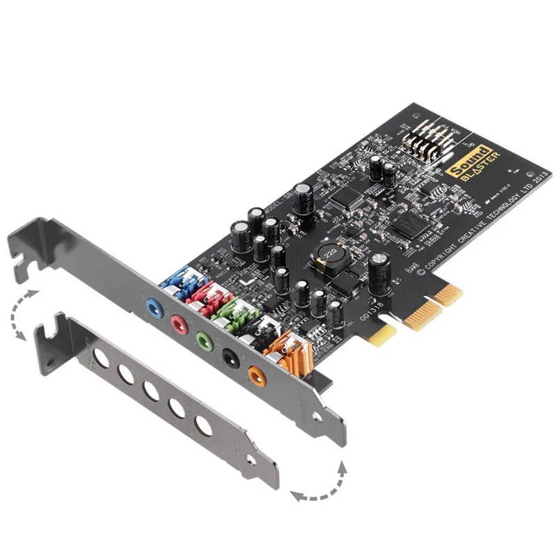 The Sound Blaster Audigy Fx also features a 24-bit 192kHz digital-to-analog converter (playback), 106dB SNR and a high-end 600-ohm headphone amplifier for studio-grade monitoring. Interchangeable full-height and half-height metal brackets are included to give you the flexibility of installing the sound card in small form factor desktop PCs.