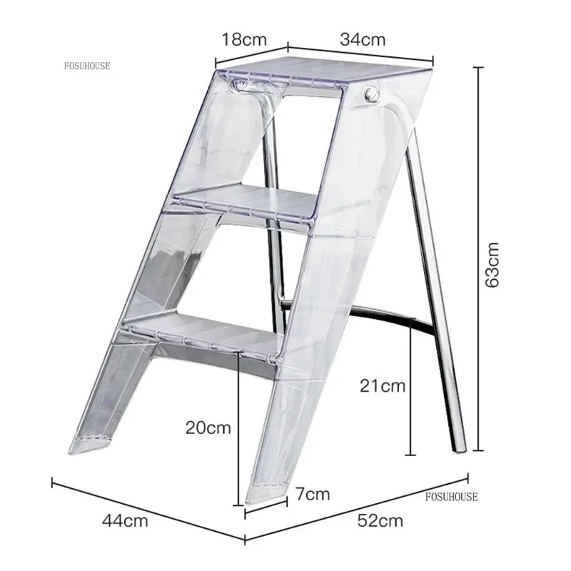 Modern Home Folding Step Stools Transparent Acrylic Step Ladders Portable Telescopic Ladder for Home Rack Creative Staircase