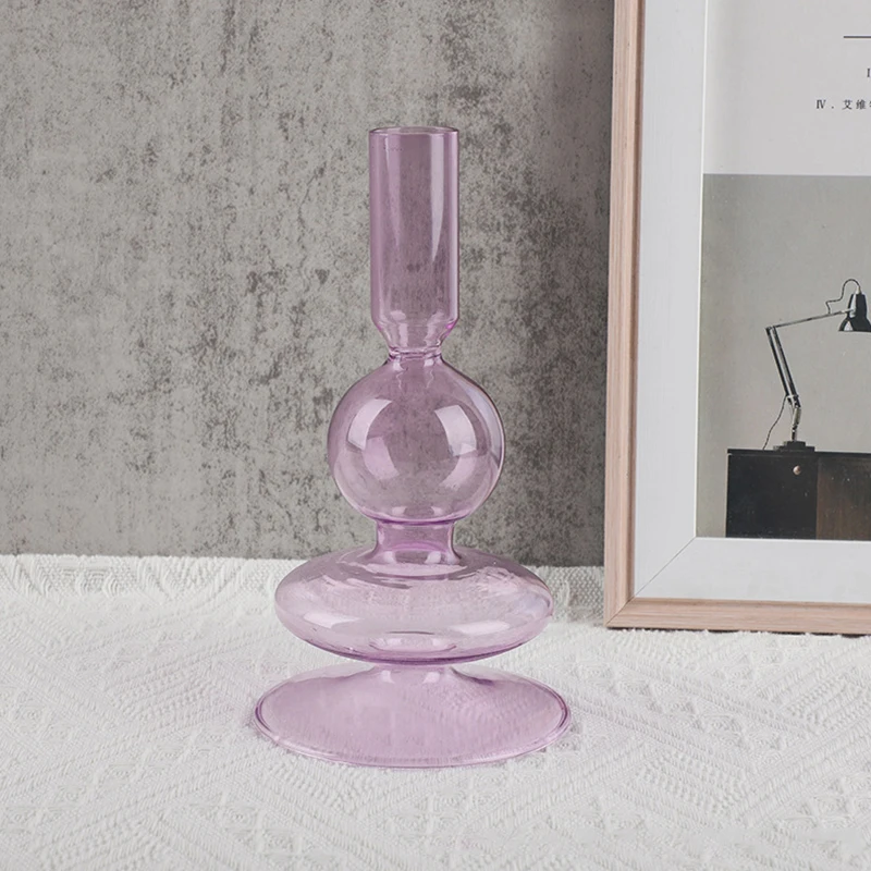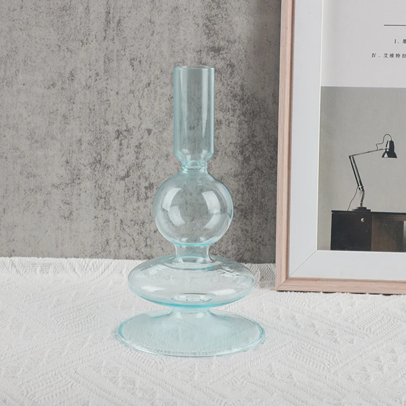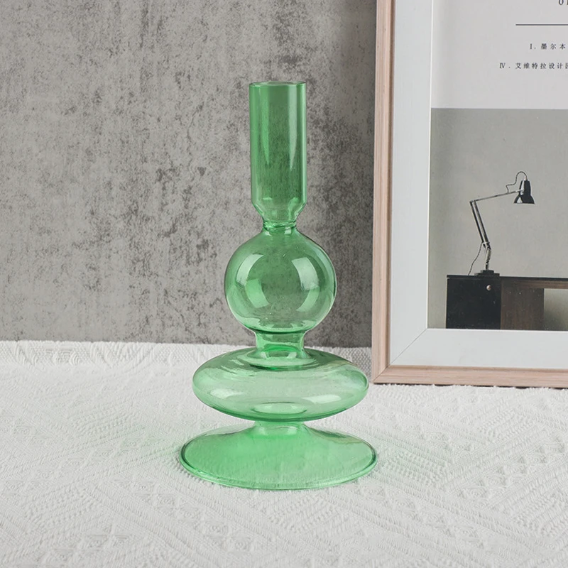 Creative Transparent Glass Candle Holders Colorful Candlesticks Flower Vase for Home Wedding Living Room Table Decoration Craft