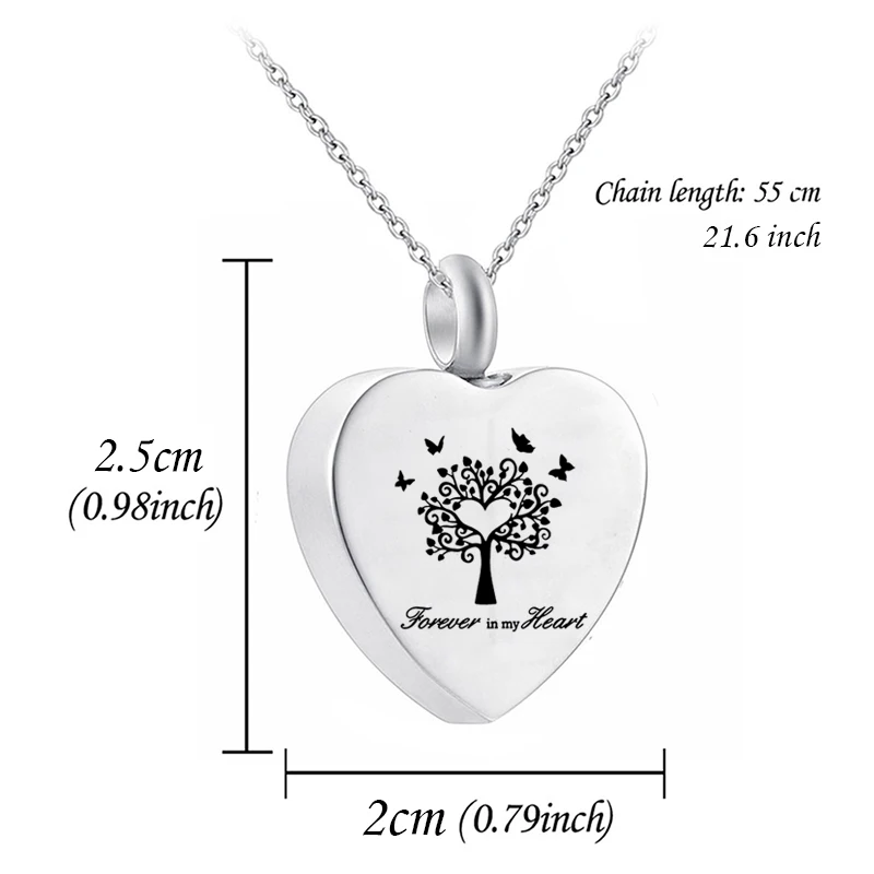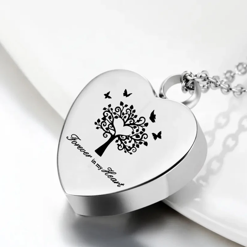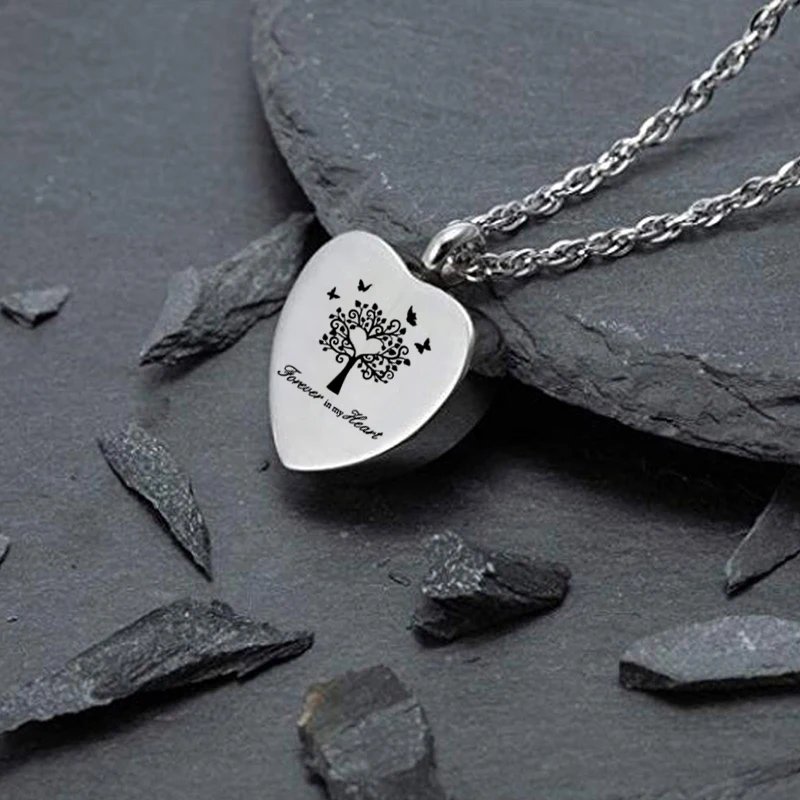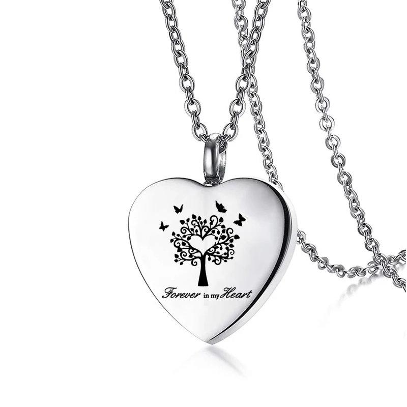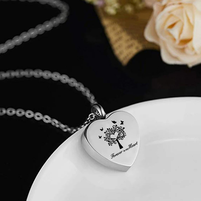 Cremation Jewelry for Ashes Tree of Life Heart Shape Pendant Stainless Steel Urn Necklace Charm Keepsake for Women