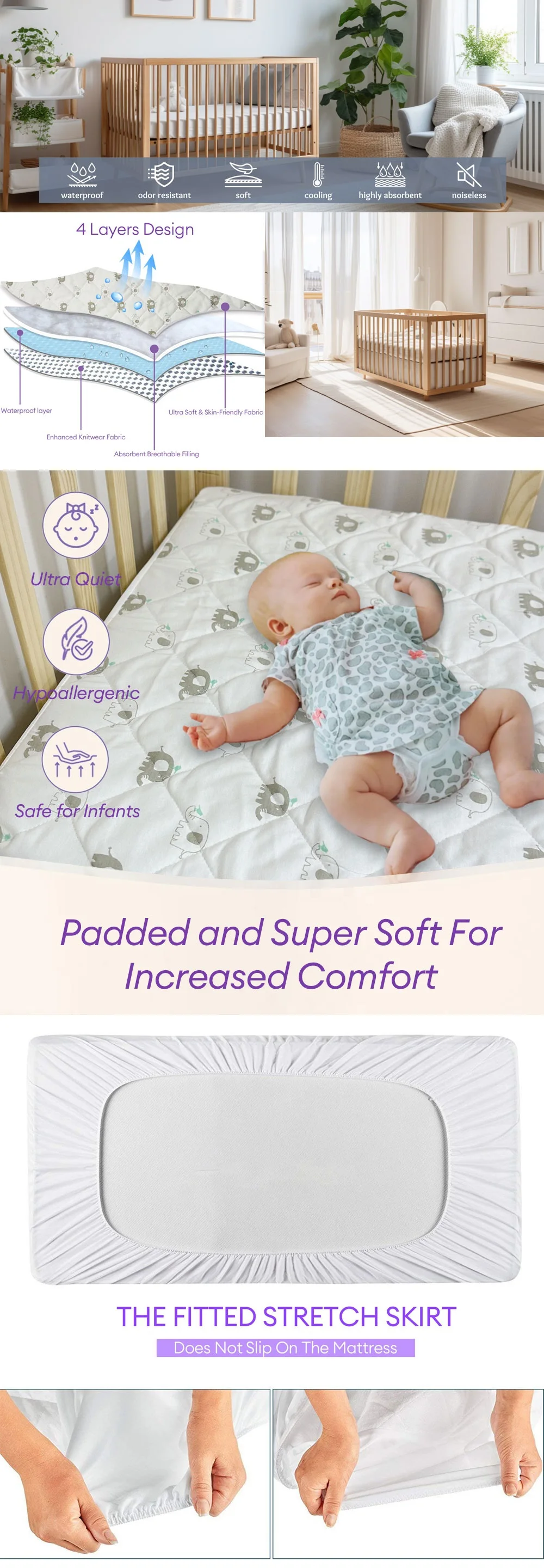 Crib Mattress Protector Sheets Fitted Waterproof Mattress Pad Cover Noiseless & Washable Quilted Toddler Mattress Protector