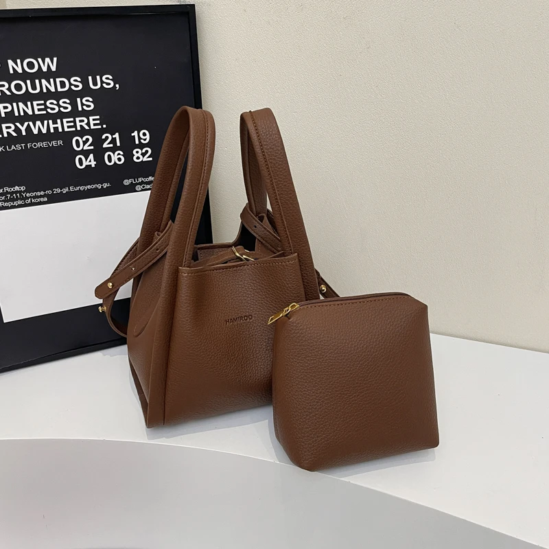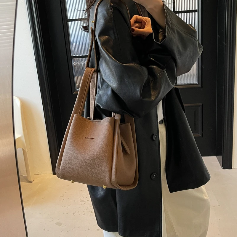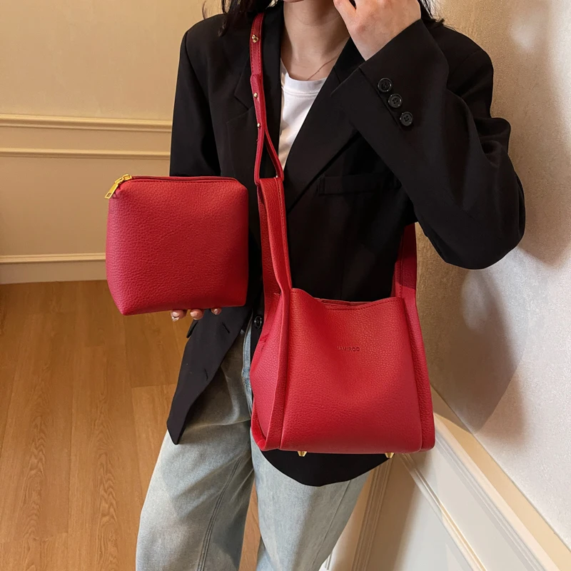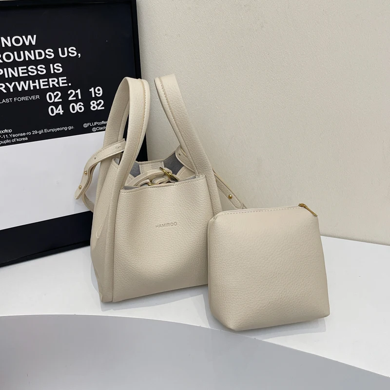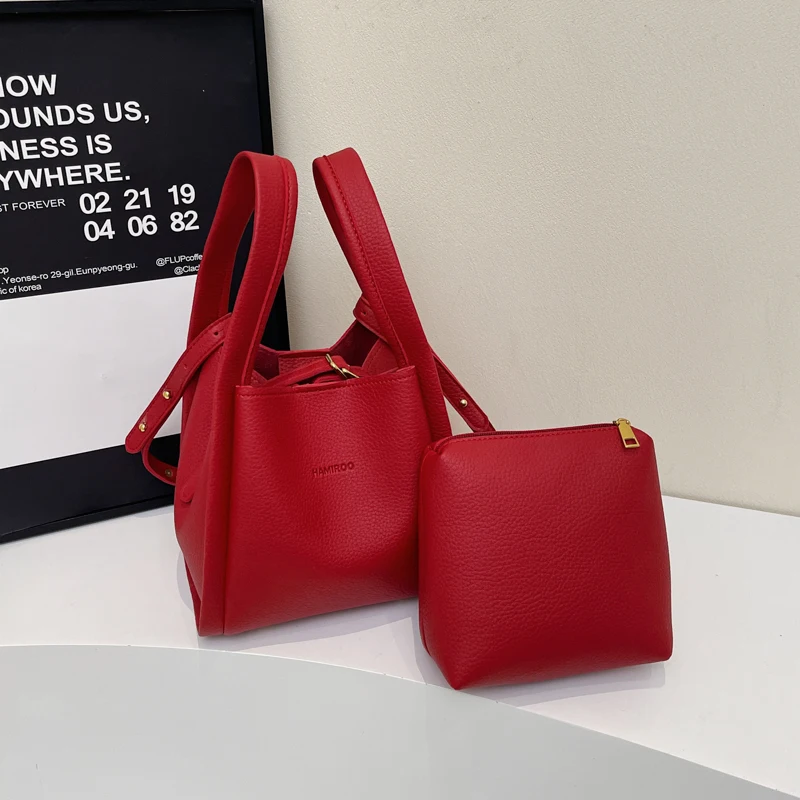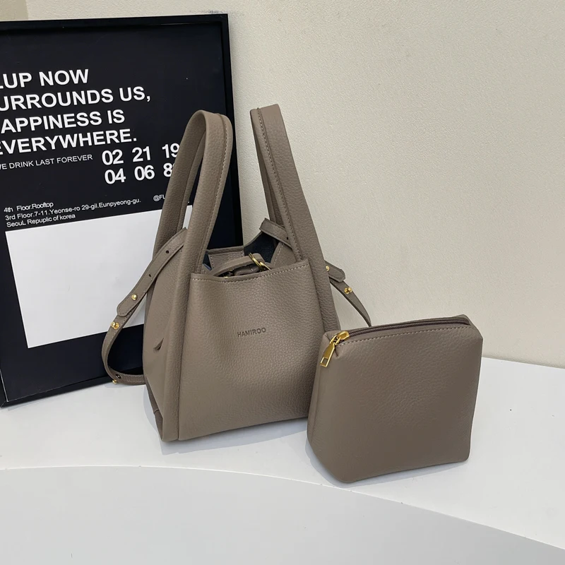 Crossbody Bags for Women PU Bucket Bags Business Formal Fashion Shoulder Bags with Pouch Korean Style Ladies Small Handbag Purse