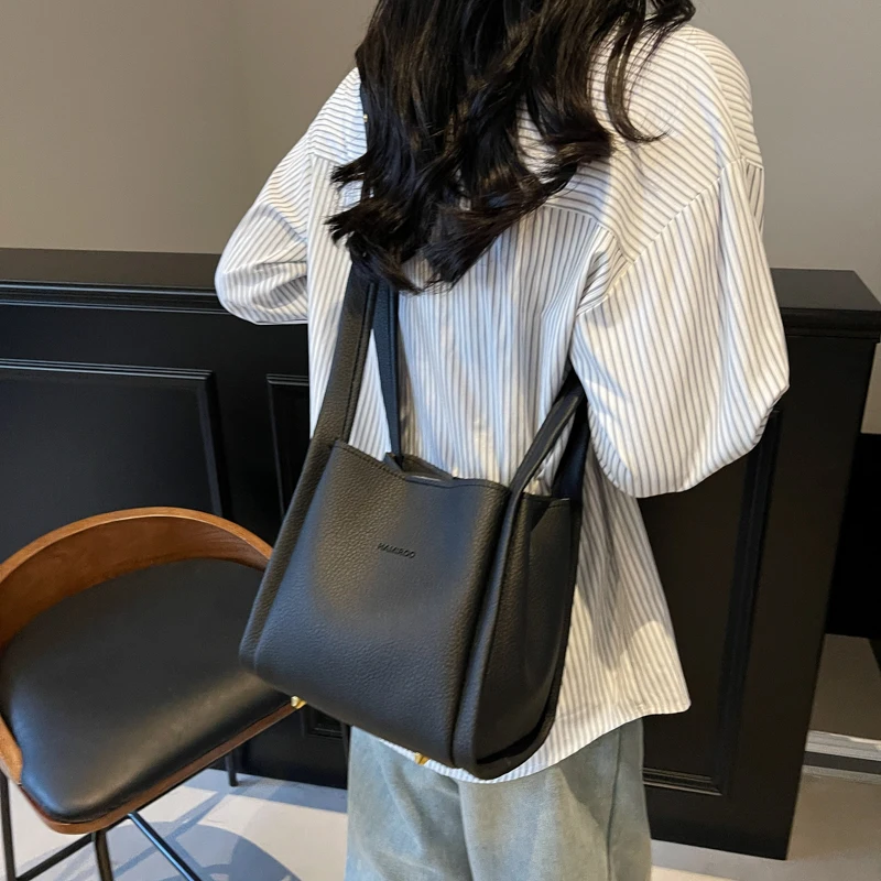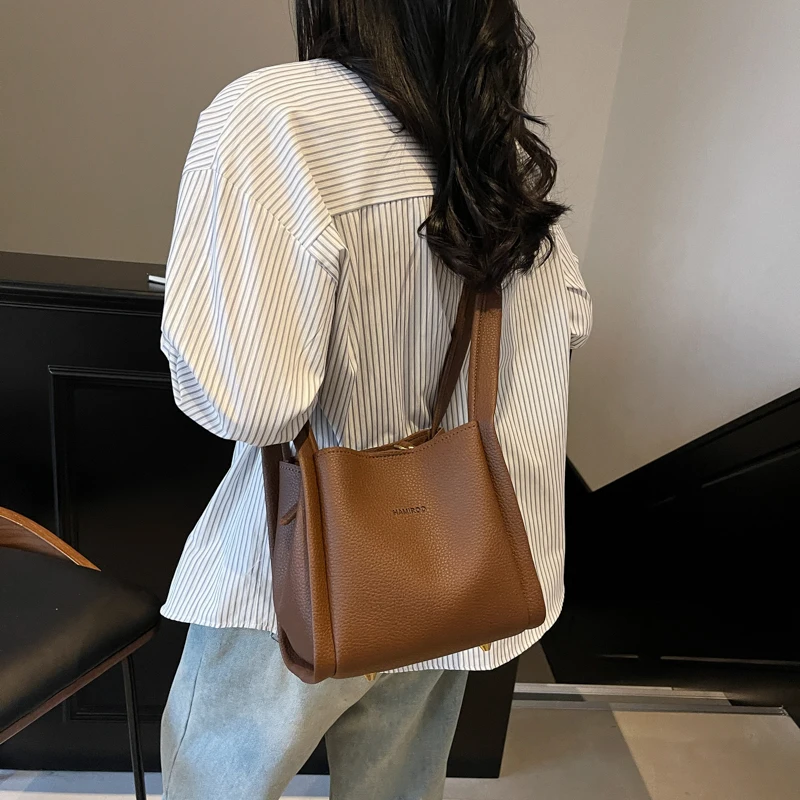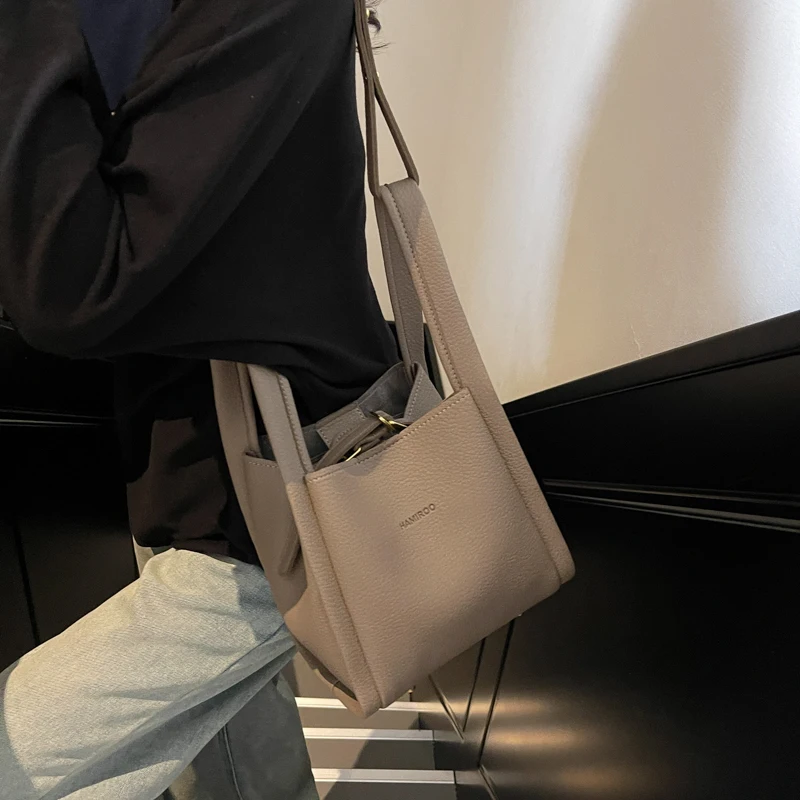 Women PU Bucket Bag Fashion Shoulder Bag Large Capacity Stylish Crossbody Bag Adjustable Strap Daily Messenger Bag Outdoor Travel Bag