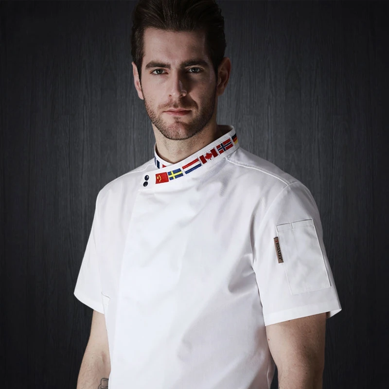 Crossover Collar Chef Jacket Men Women Kitchen Hotel Restaurant Cook Clothes Chef Restaurant Uniform