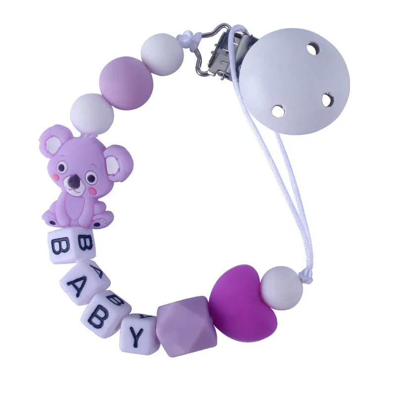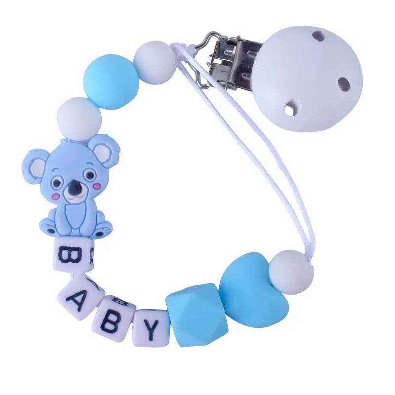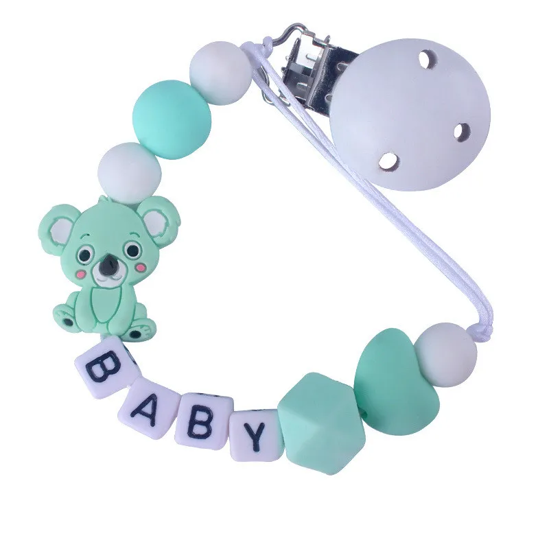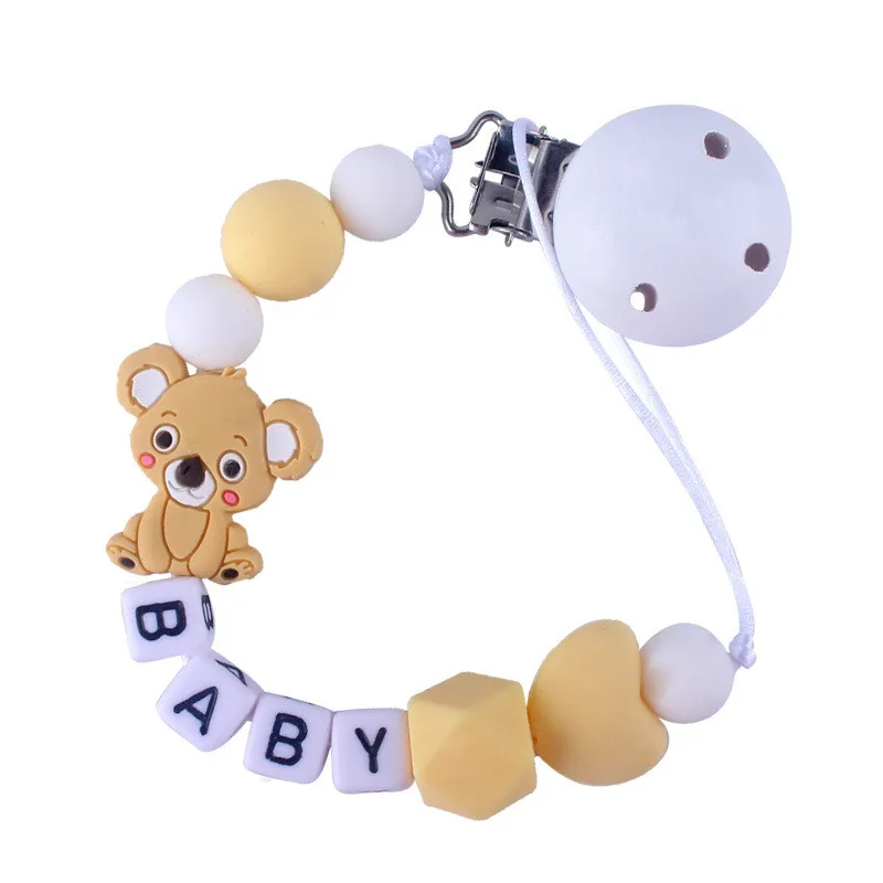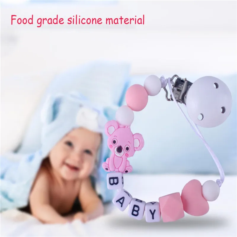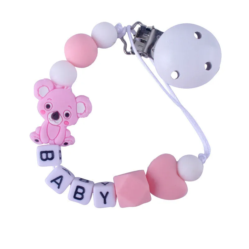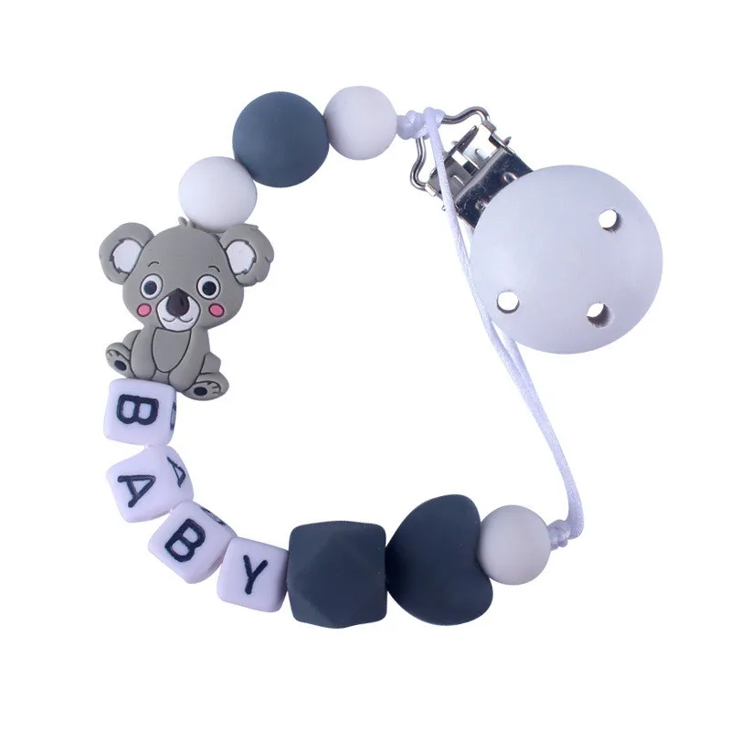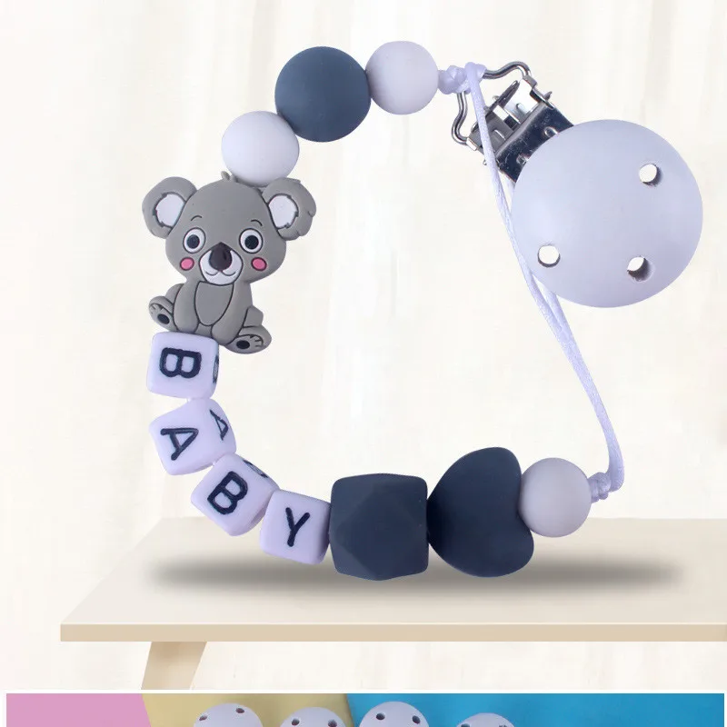 Custom English Letter Name Silicone Fox Beads Baby Pacifier Chain Clip Teether Pendants Kawaii Baby Creative