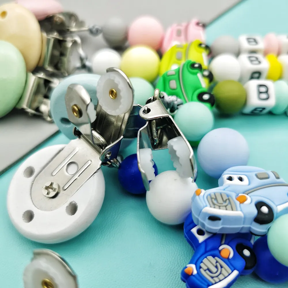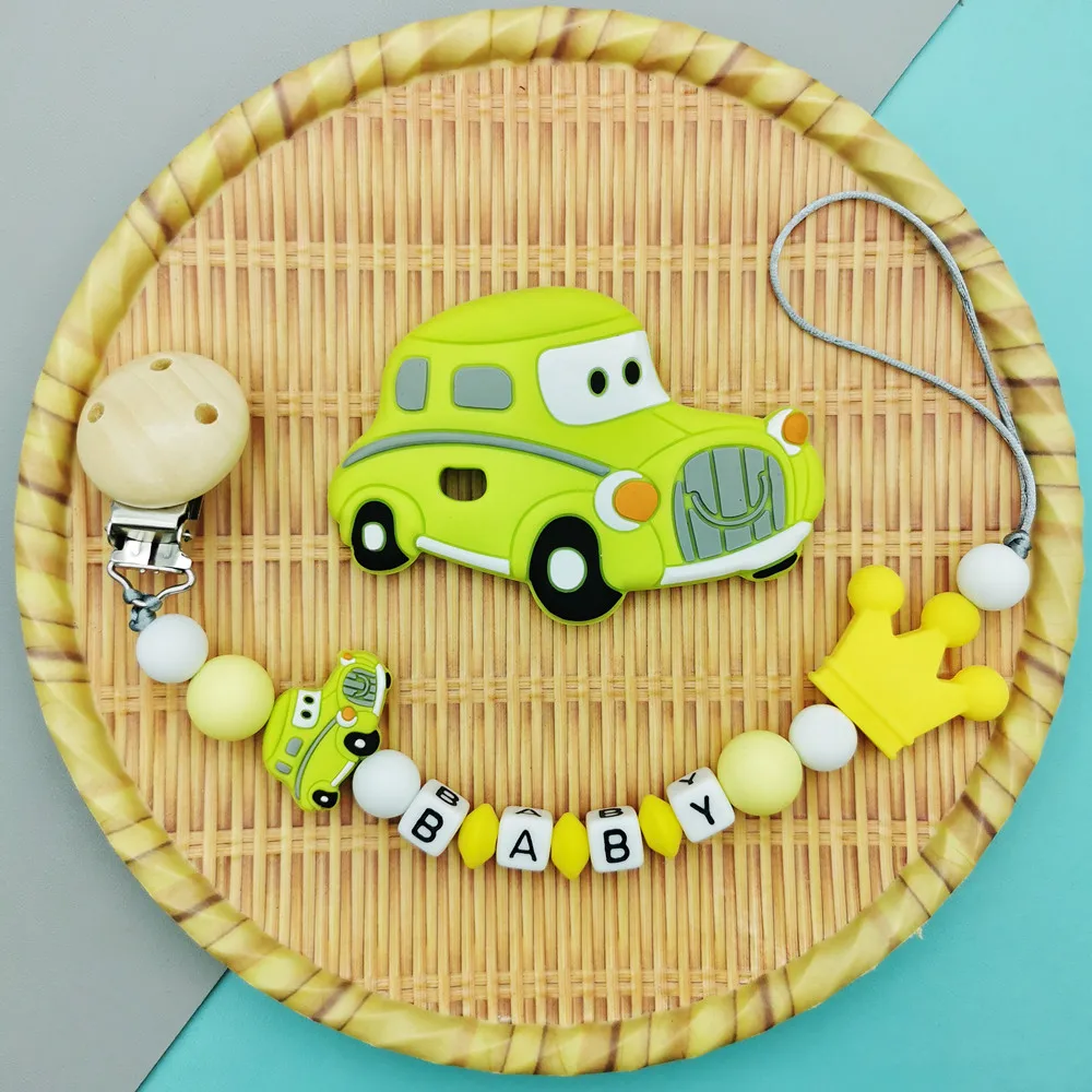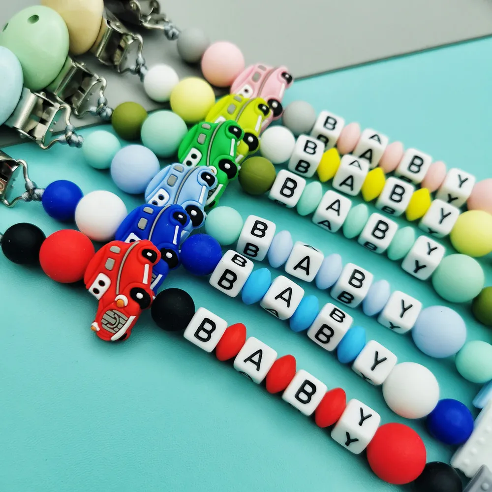 Custom English Russian Letter Name Silicone classic cars Pacifier Clip Chain Teether Pendant for Baby Pacifier Kawaii Teether