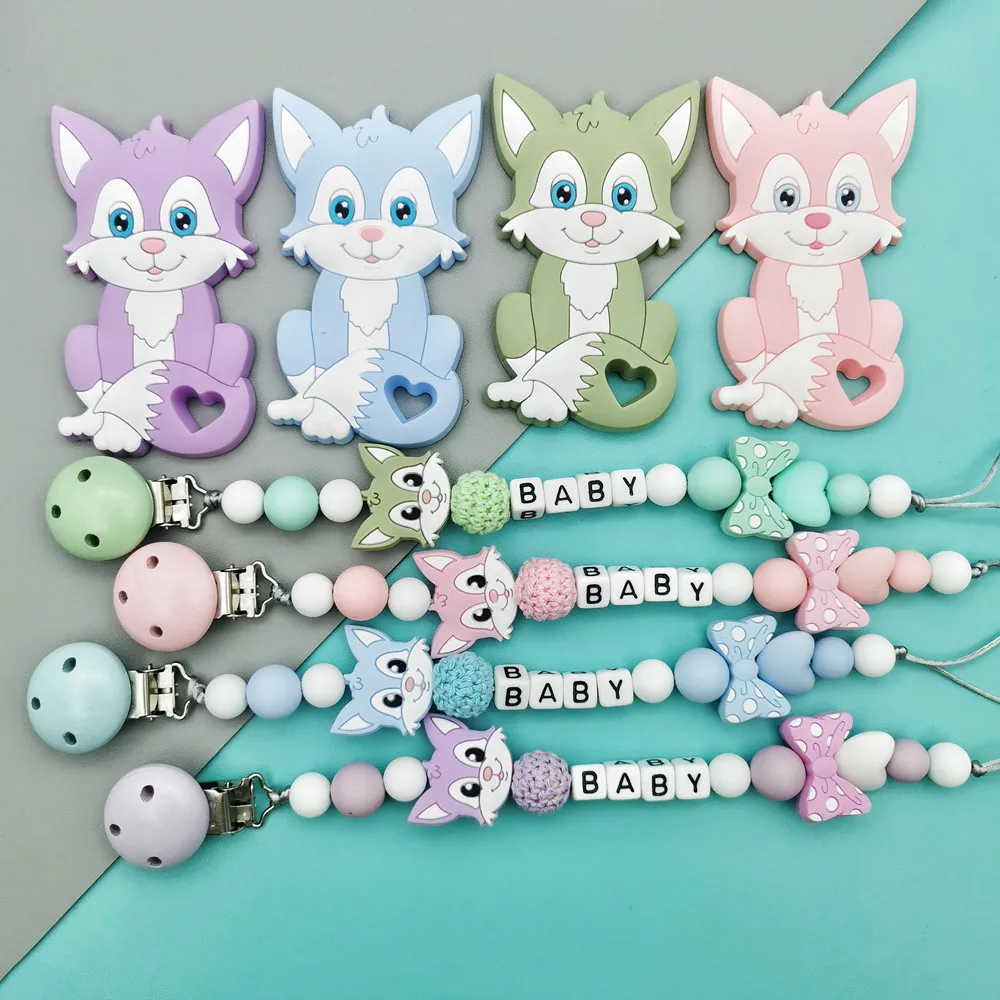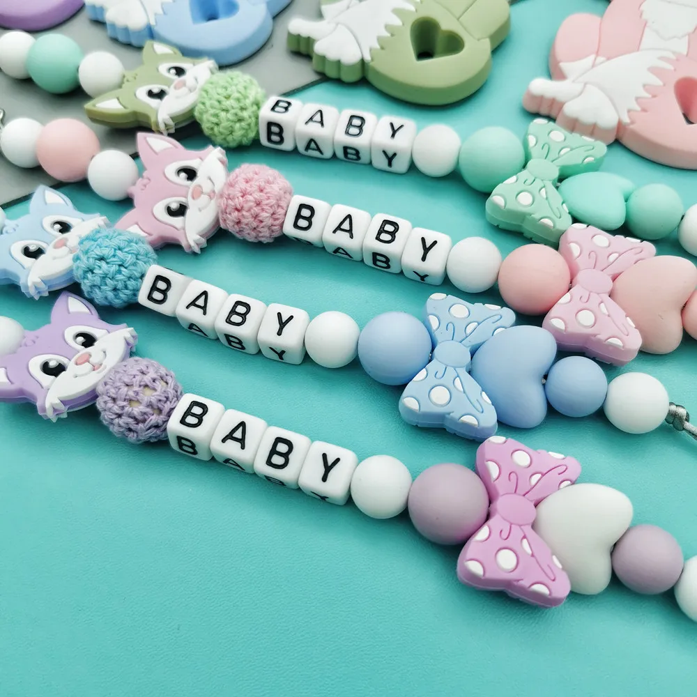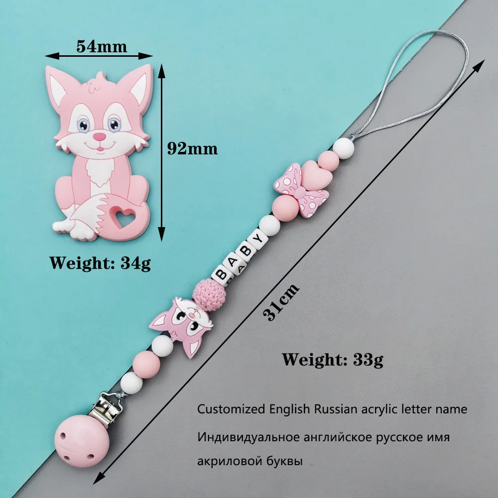 Customized English Russian acrylic letter name Baby Silicone Pacifier Clips Chains Teether Pendants Baby Pacifier Kawaii Gifts