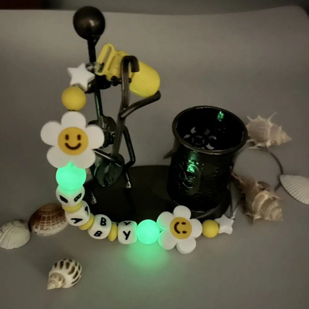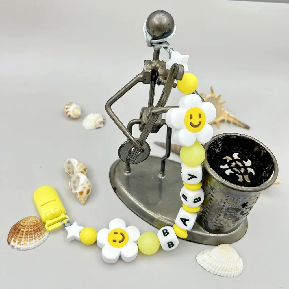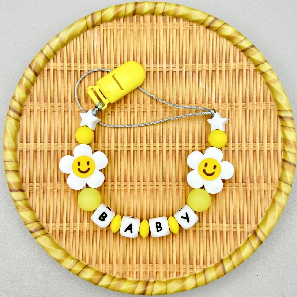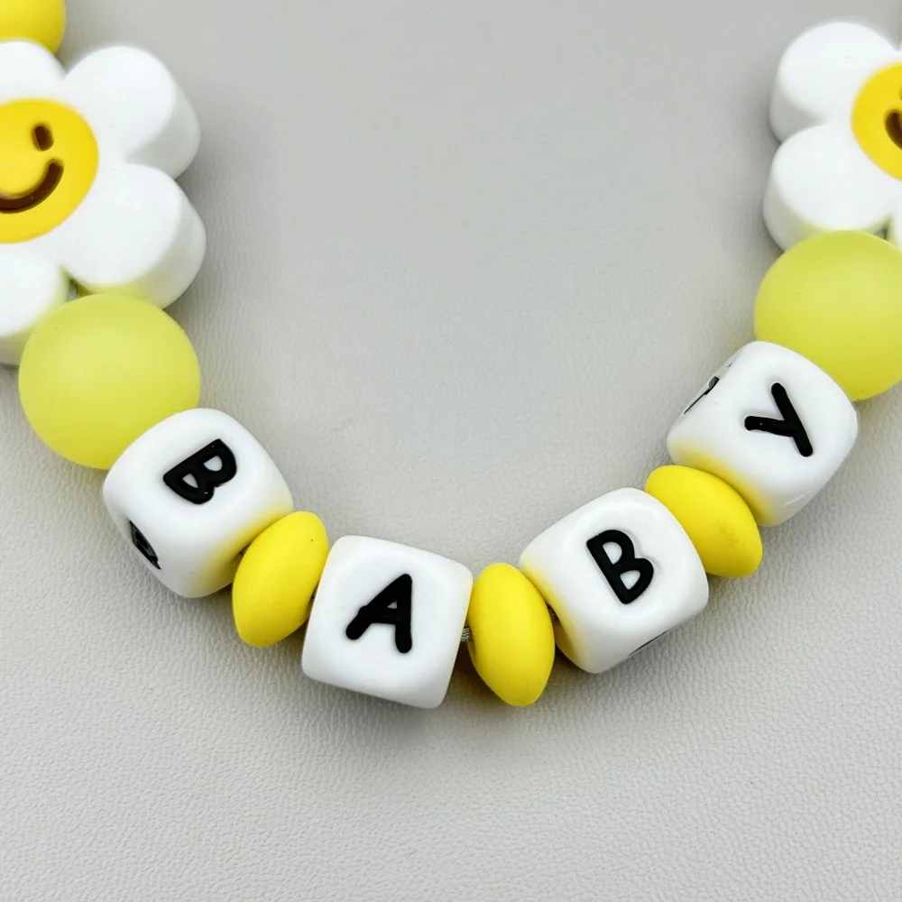 Customized Letters Name Baby Flower Silicone Luminous Beads Pendant Pacifier Clips Chains Holder Teether Baby Kawaii Toy Gifts