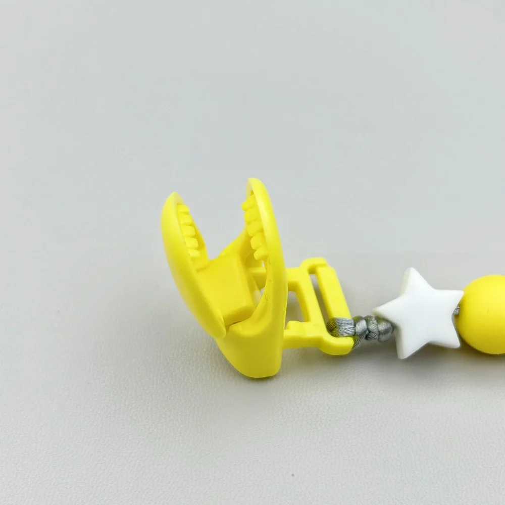 1. The pacifier chain is clamped in the corner of the baby’s clothing to avoid the pacifier from falling on the floor and getting dirty.