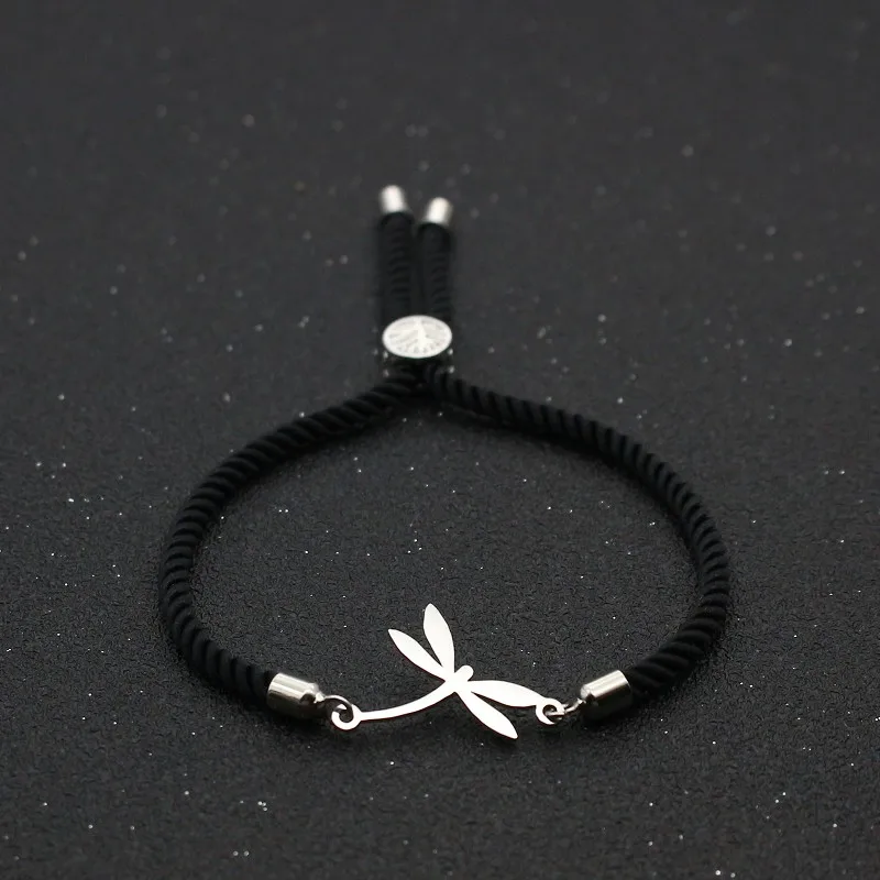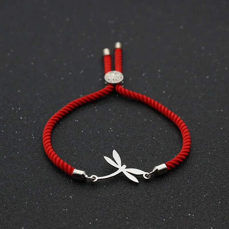 Cute Bear Stainless Steel Lovely Dragonfly Bracelets For Women Girls Lucky Red Thread Rope Adjustable Charm Bracelet Jewelry