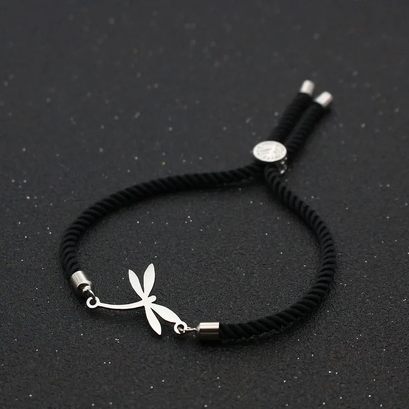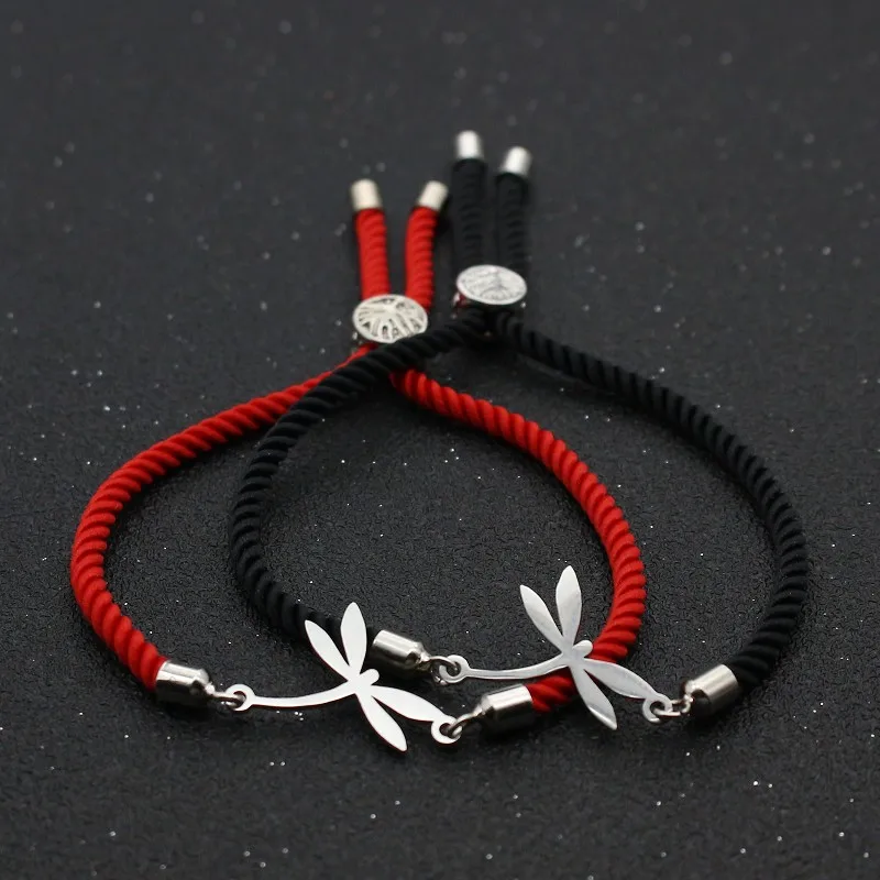 Cute Bear Stainless Steel Lovely Dragonfly Bracelets For Women Girls Lucky Red Thread Rope Adjustable Charm Bracelet Jewelry