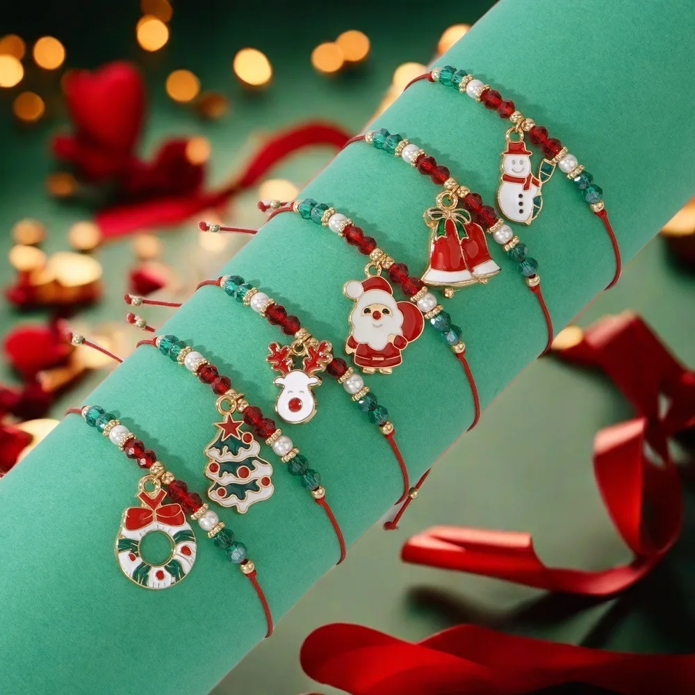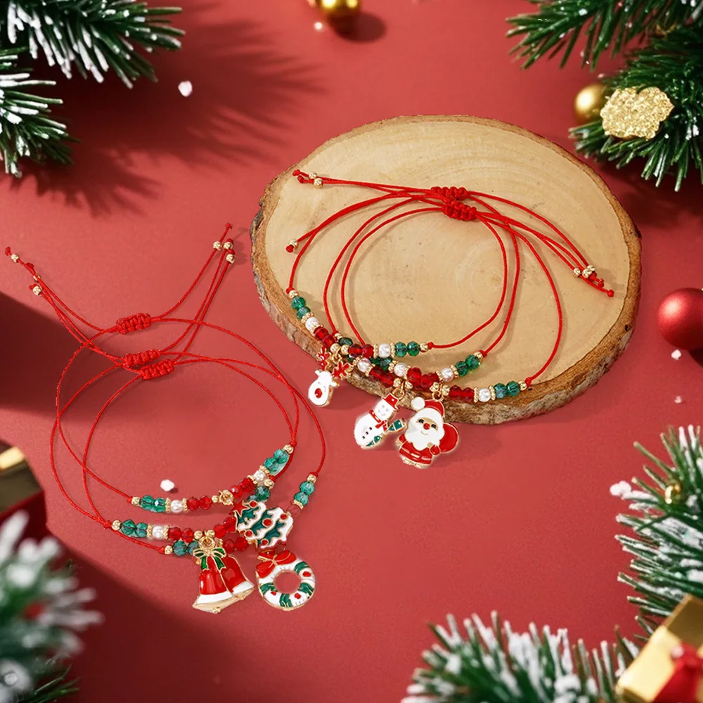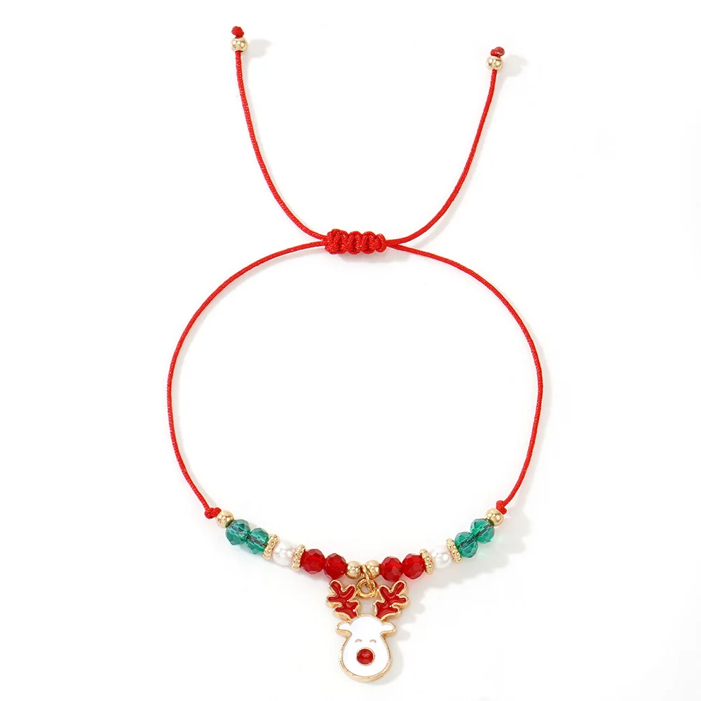 Cute Christmas Series Snowflake Tree Santa Claus Woven Bracelet New Year Jewelry Adjustable Thread Rope Bracelet