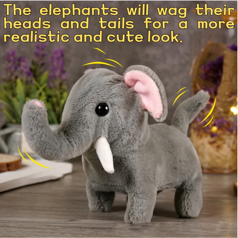Cute Electric Plush Elephant Children’s Simulation Walking Sound Effect Shaking Tail Electronic Pet Children’s Plush Doll Gift